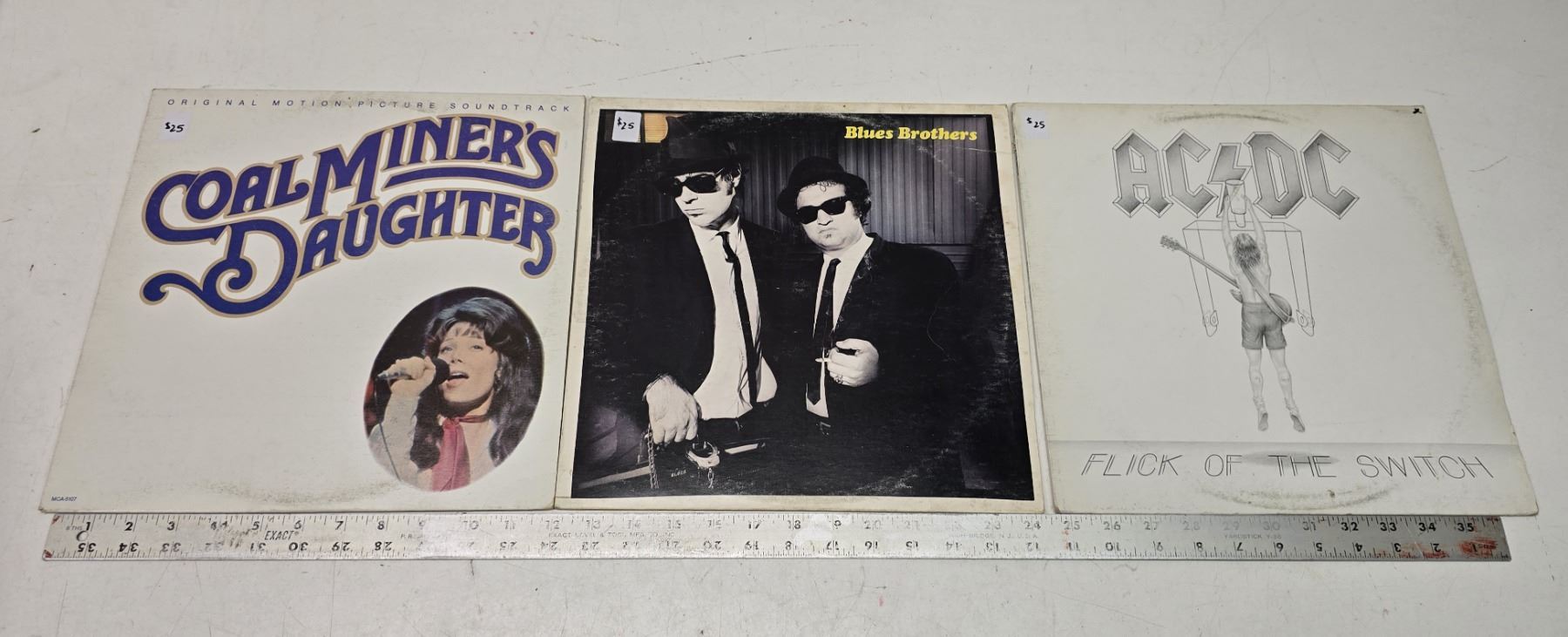 3 Collector's vinyl records - Coal Miner's daughter, Blues Brothers & ACDC - pristine