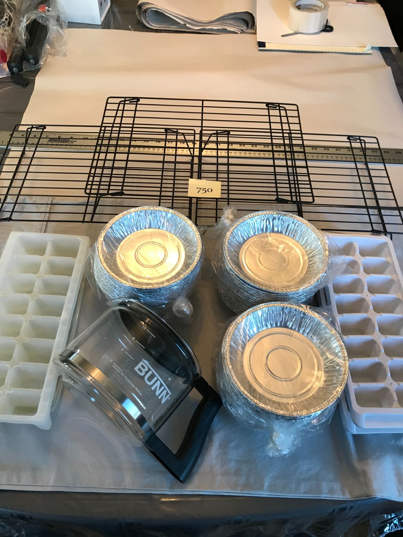 3 Cooling Racks; 100+ 6" Tin Foil Plates; 4 Ice Cube Trays; Bunn-Coffee Carafe