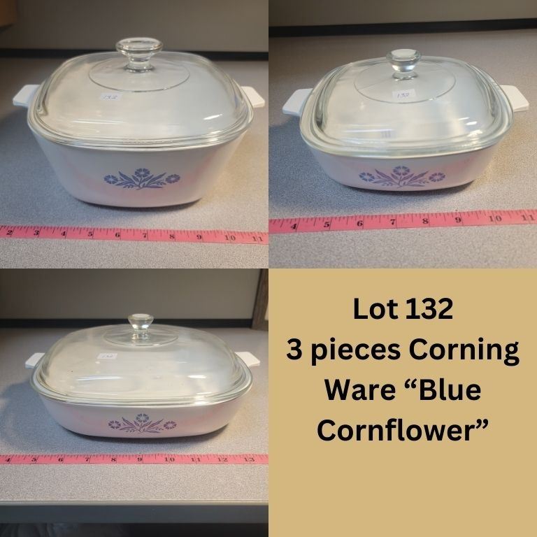 3 Corning Ware, blue cornflower casserole dishes - 4 cup/60 oz 9.5"