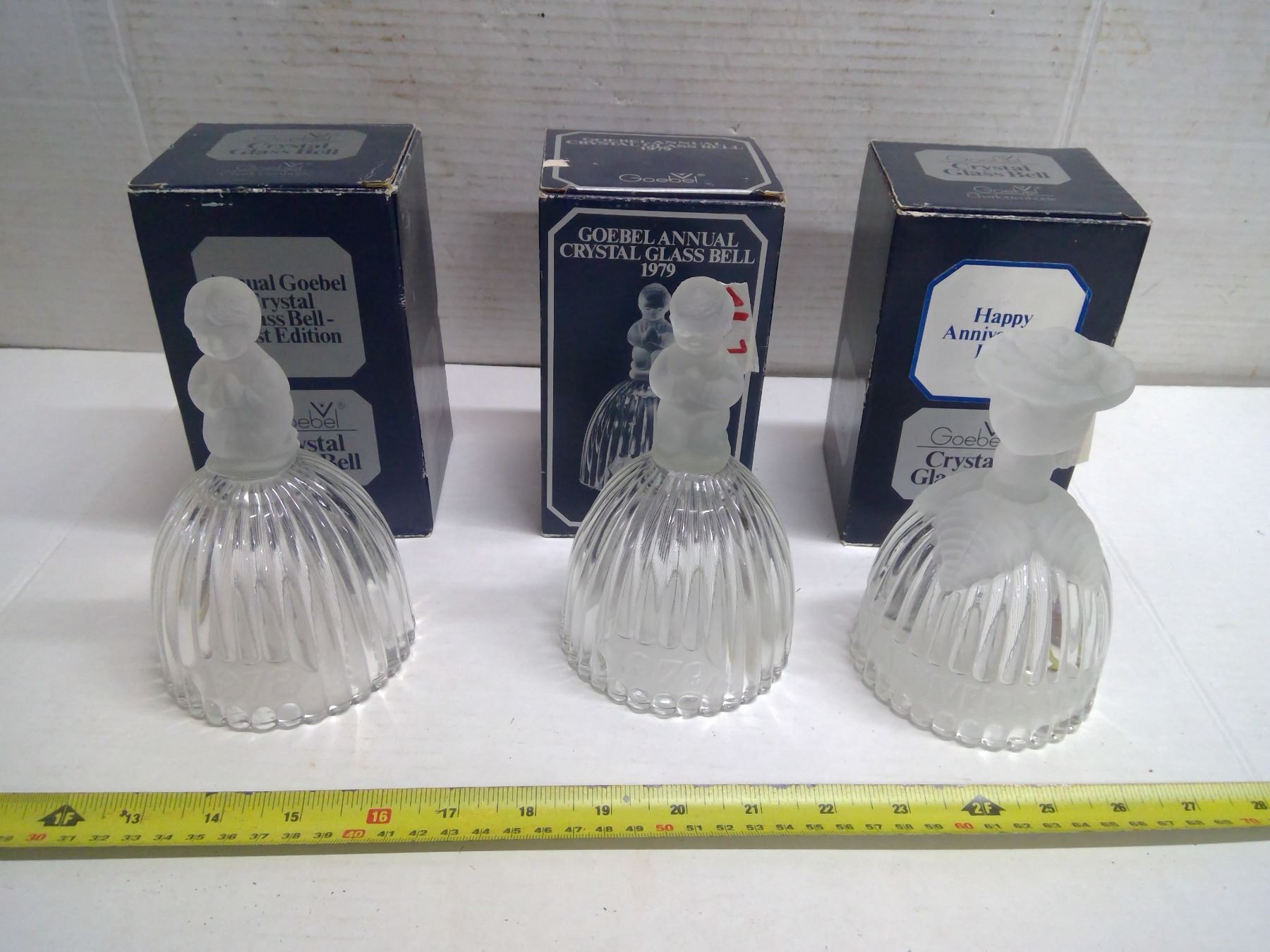 3 Crystal Glass Bells - Like New