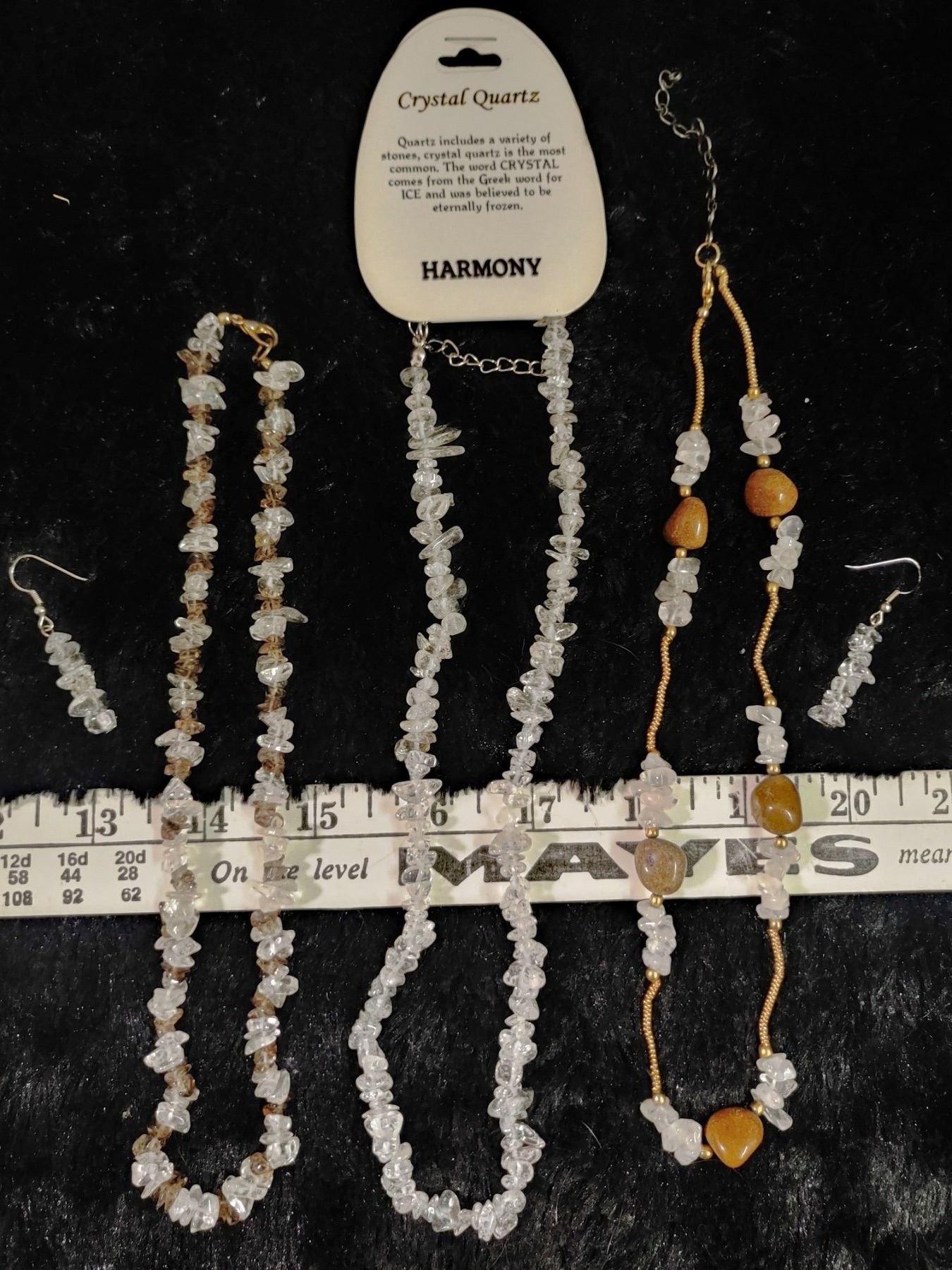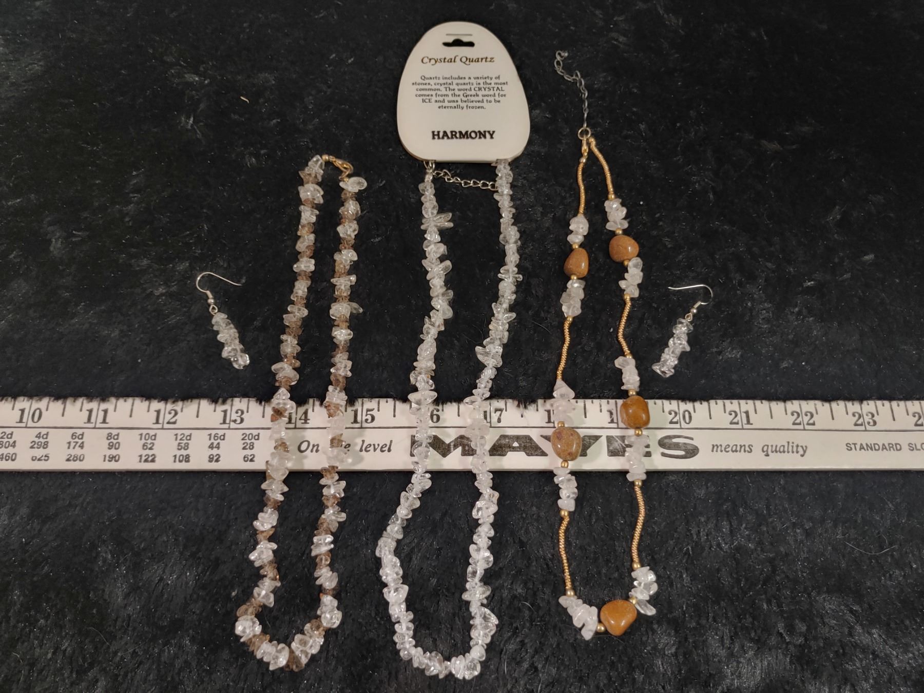 3 Crystal Quartz Necklaces + Earrings, Stone of Harmony