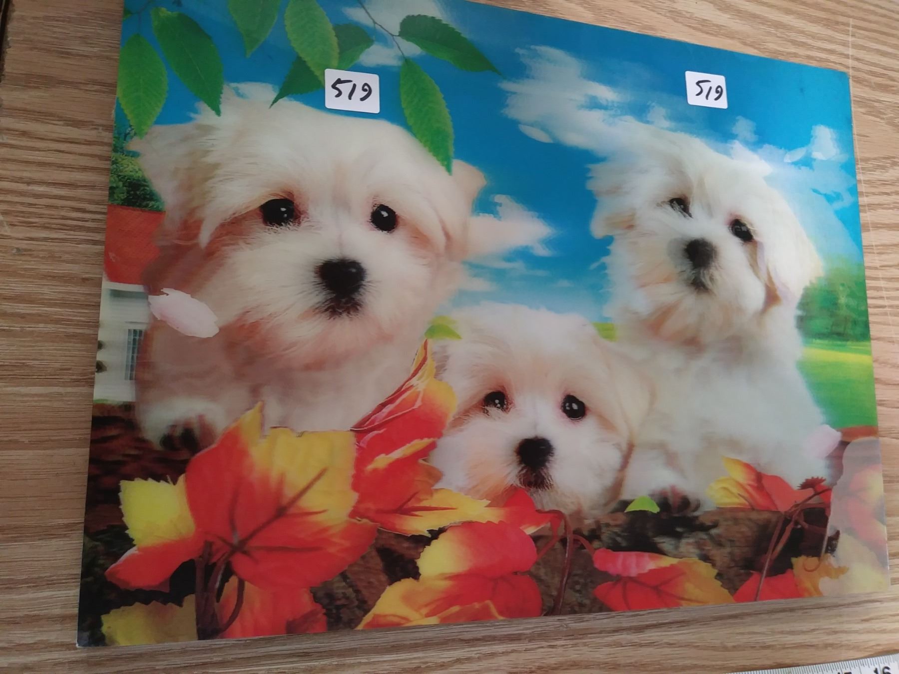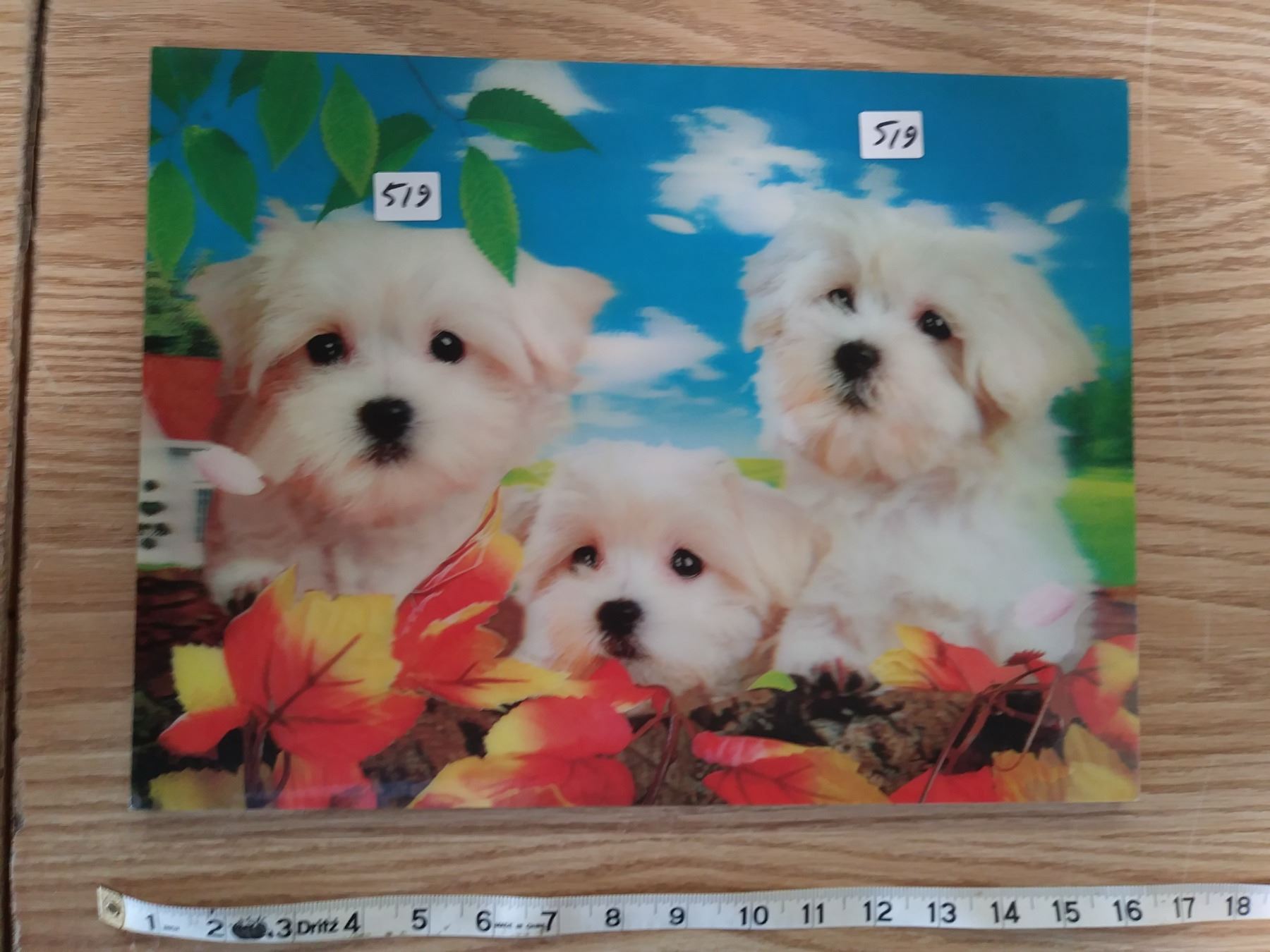 3-D color photo of 3 Maltese dogs on 3/8" board 15.5" X 11.5"