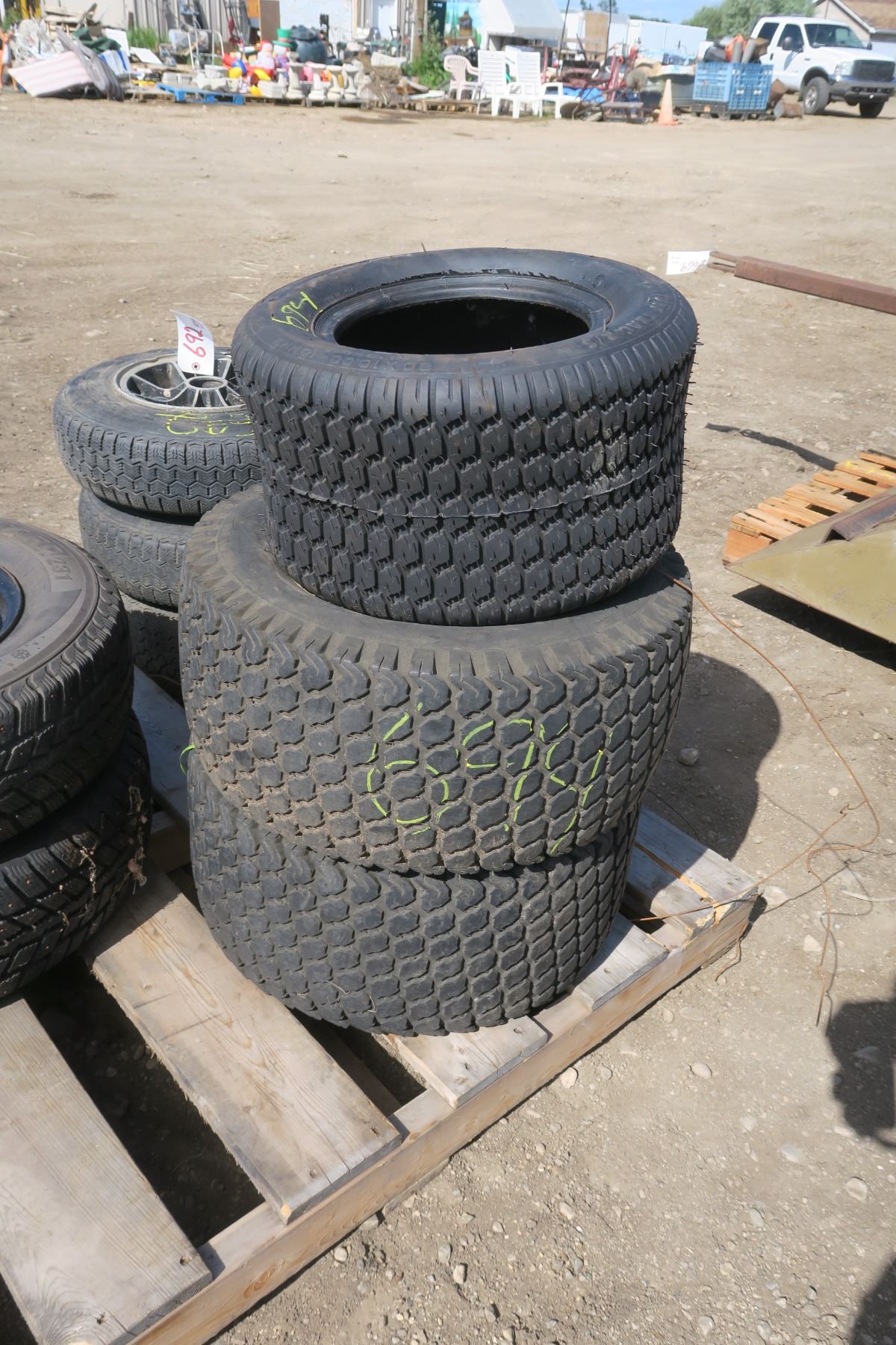 3 Farm/Recreation Tires - 1x 2.0x10-10NHS, 2x on Rims 23x10.5-12NHS