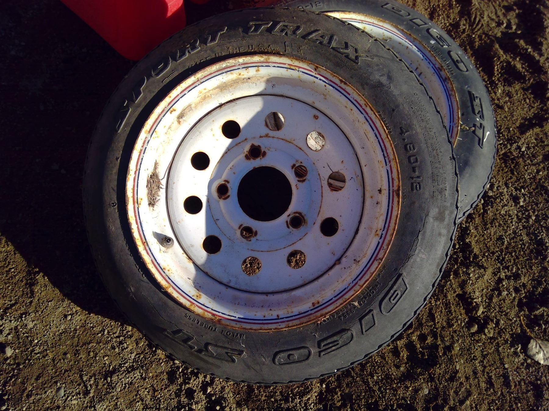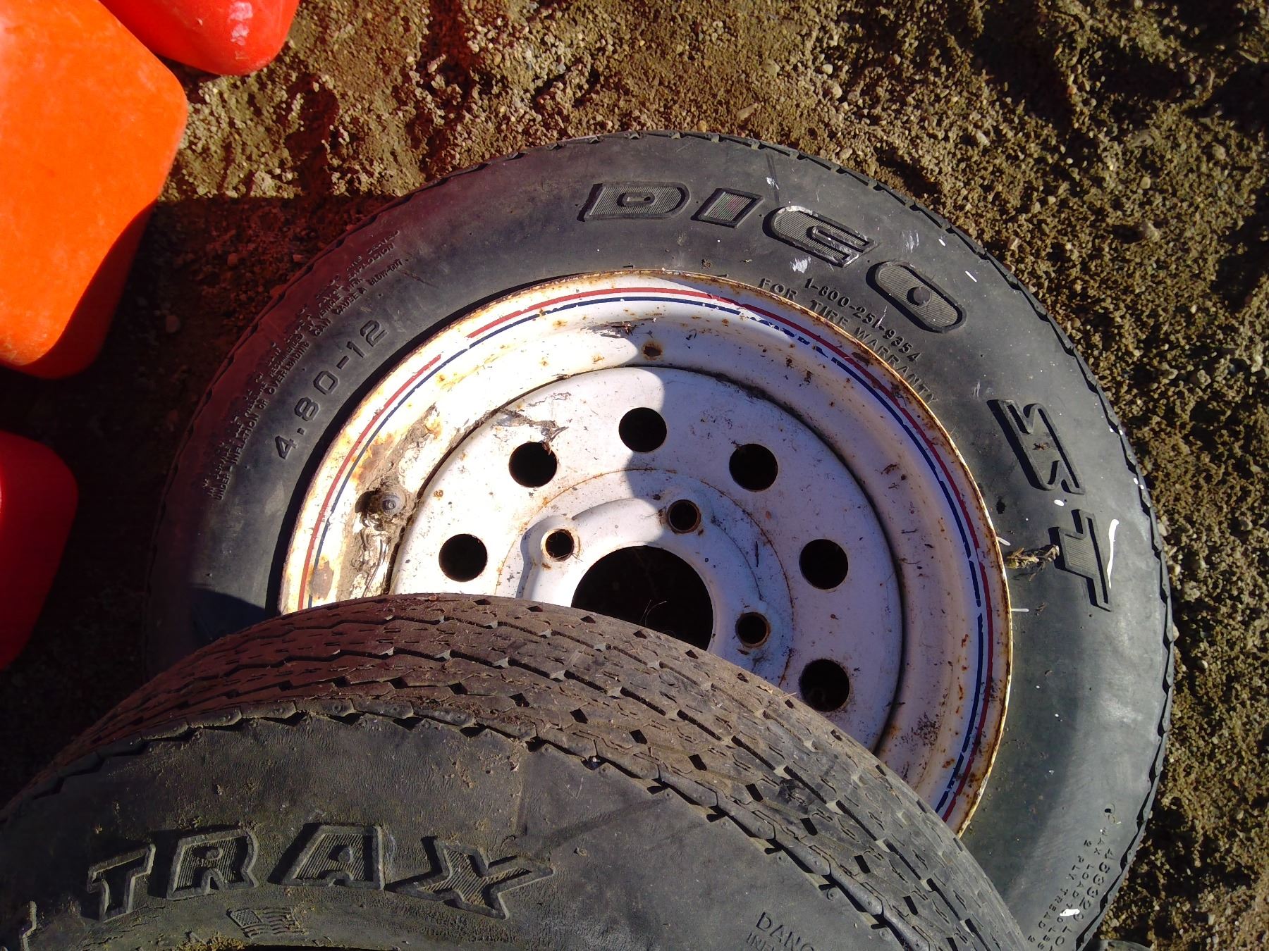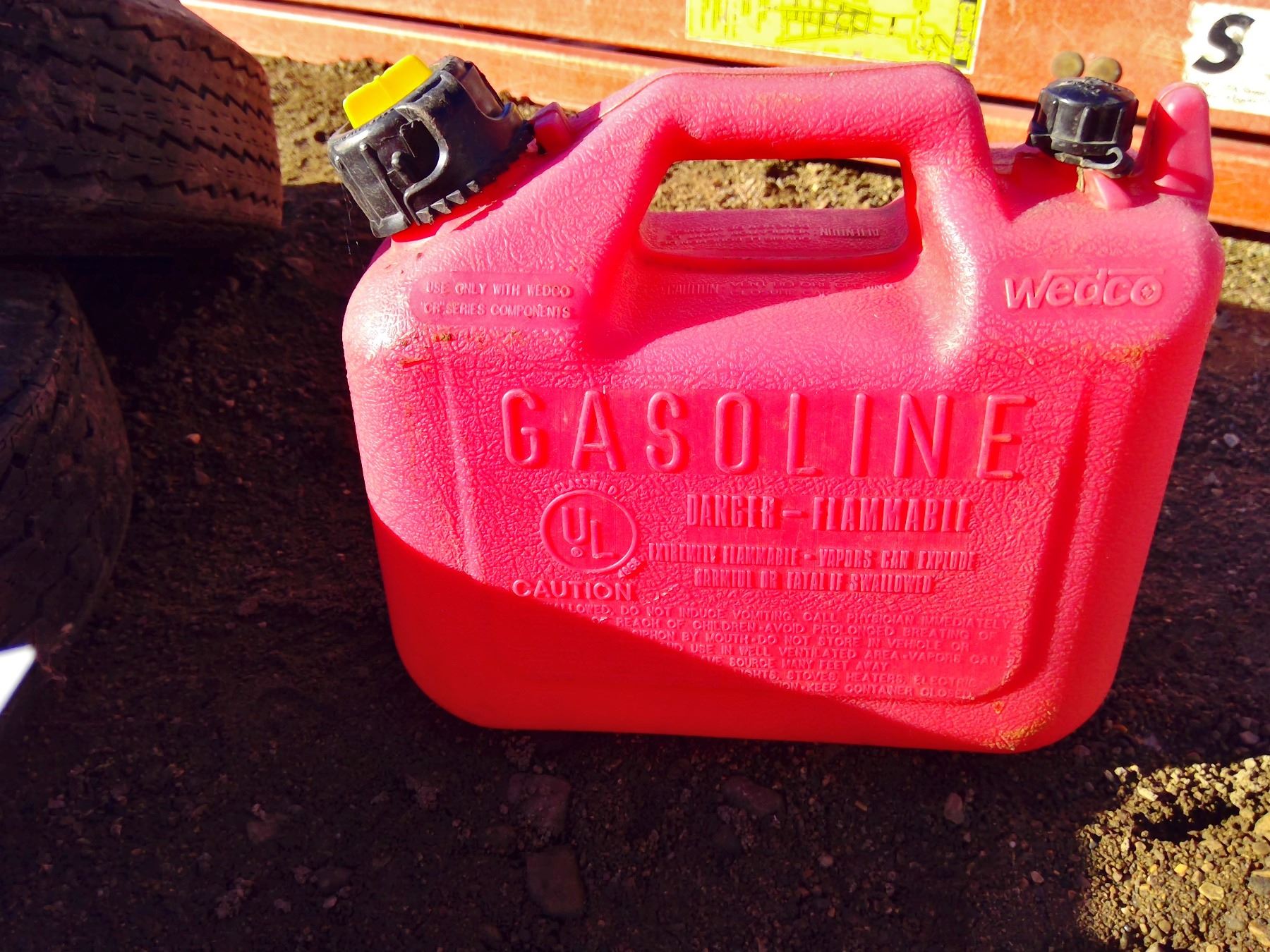 3 Gas cans, 2 tires, & painters dropcloth
