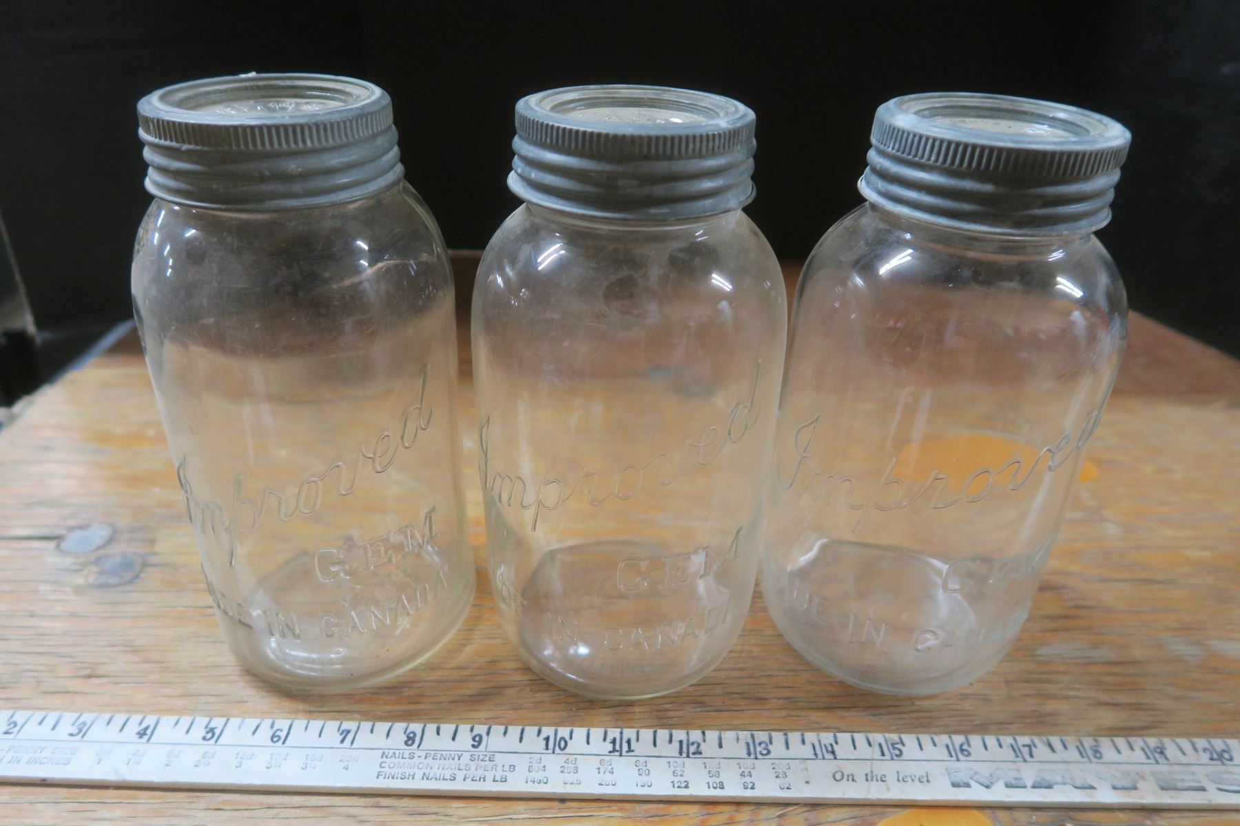 3 Gem sealer jars with glass tops