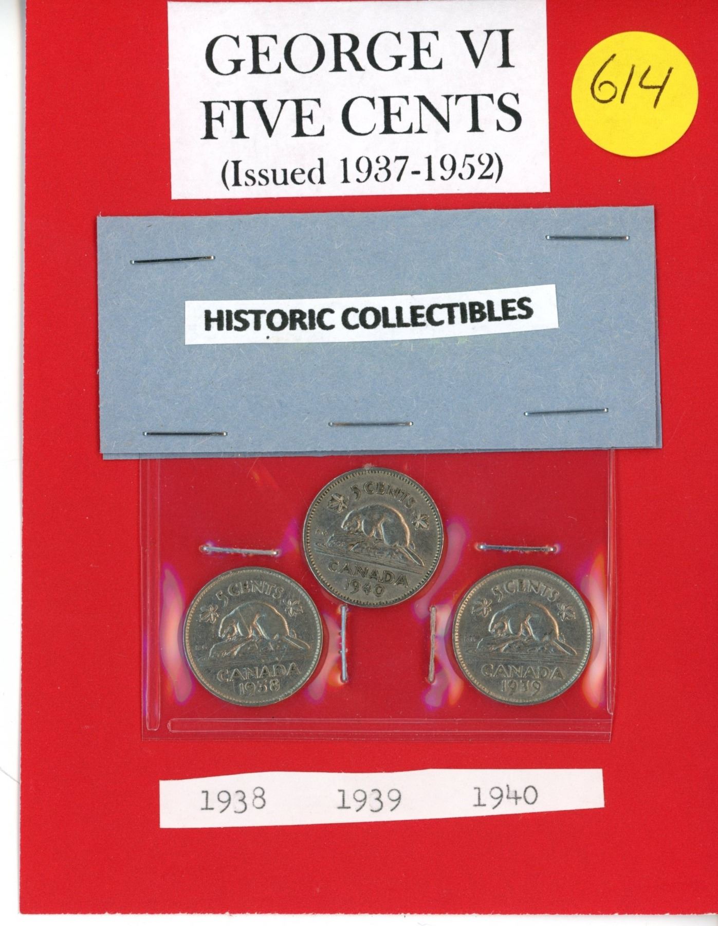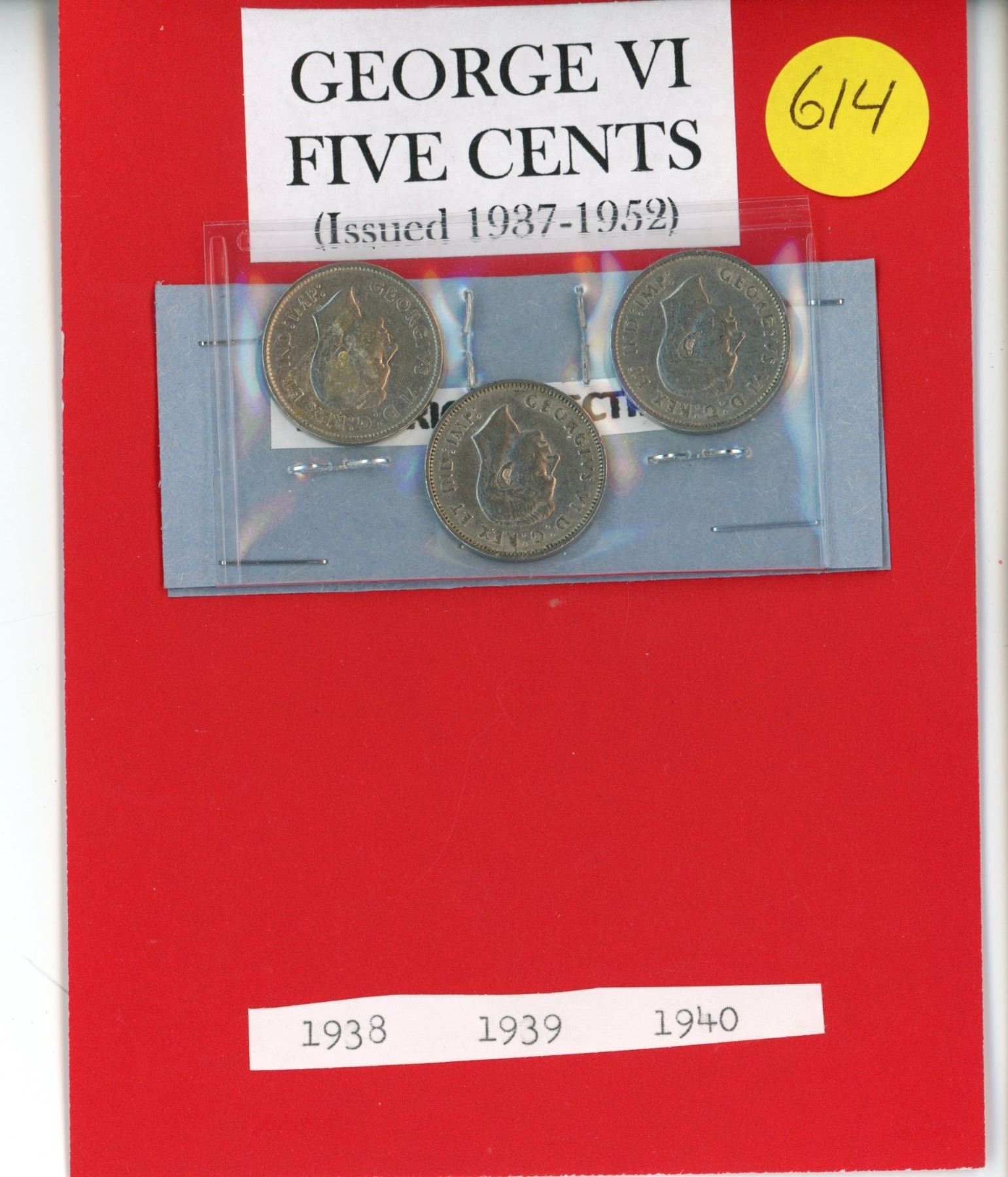 (3) George VI 5¢ Coins - 1938, 1939, 1940