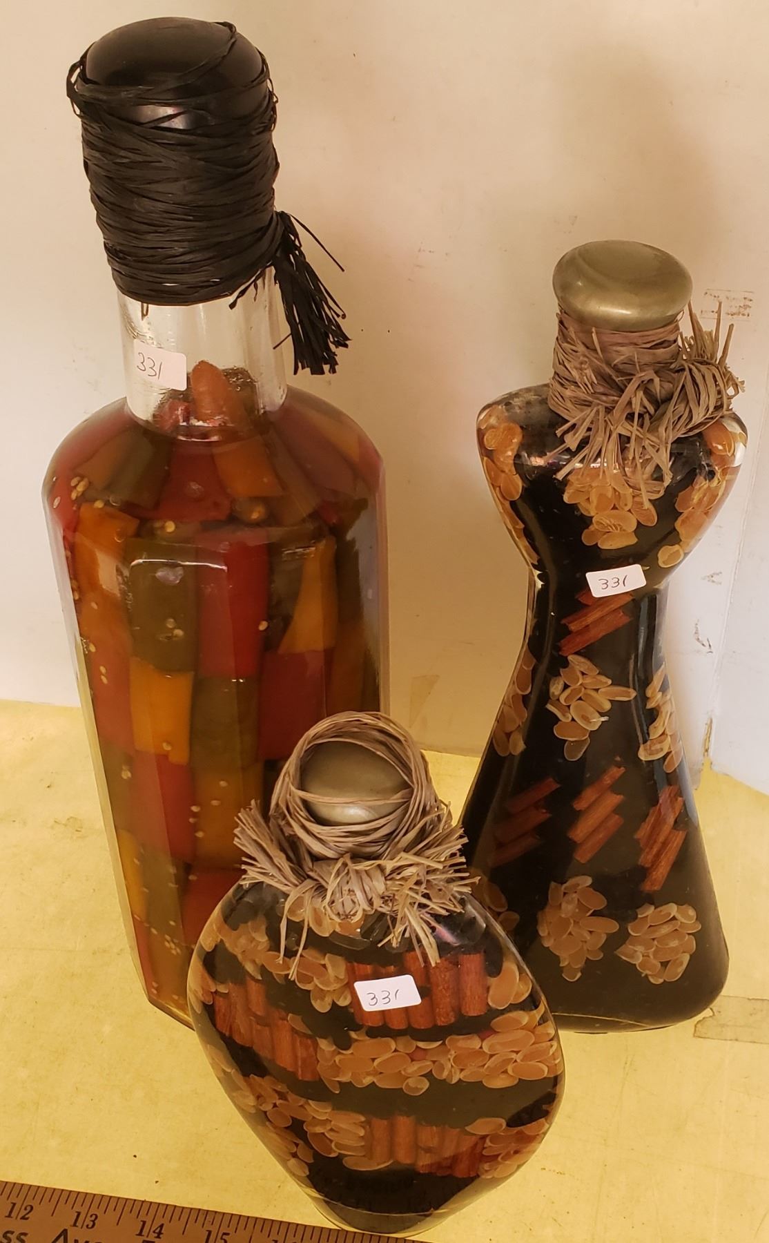 3 Glass Decorative Ins Stuffed with (Peppers,Cinnamon, Seeds)