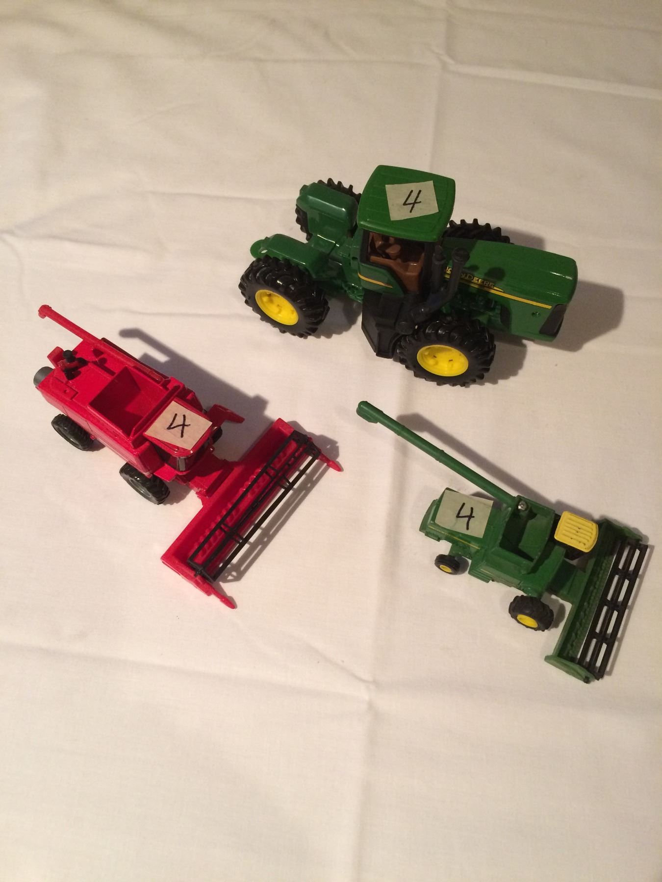 3 Items: John Deere 4 wheel tractor, John Deere Combine, mini turbo, Case 2166 Combine mini