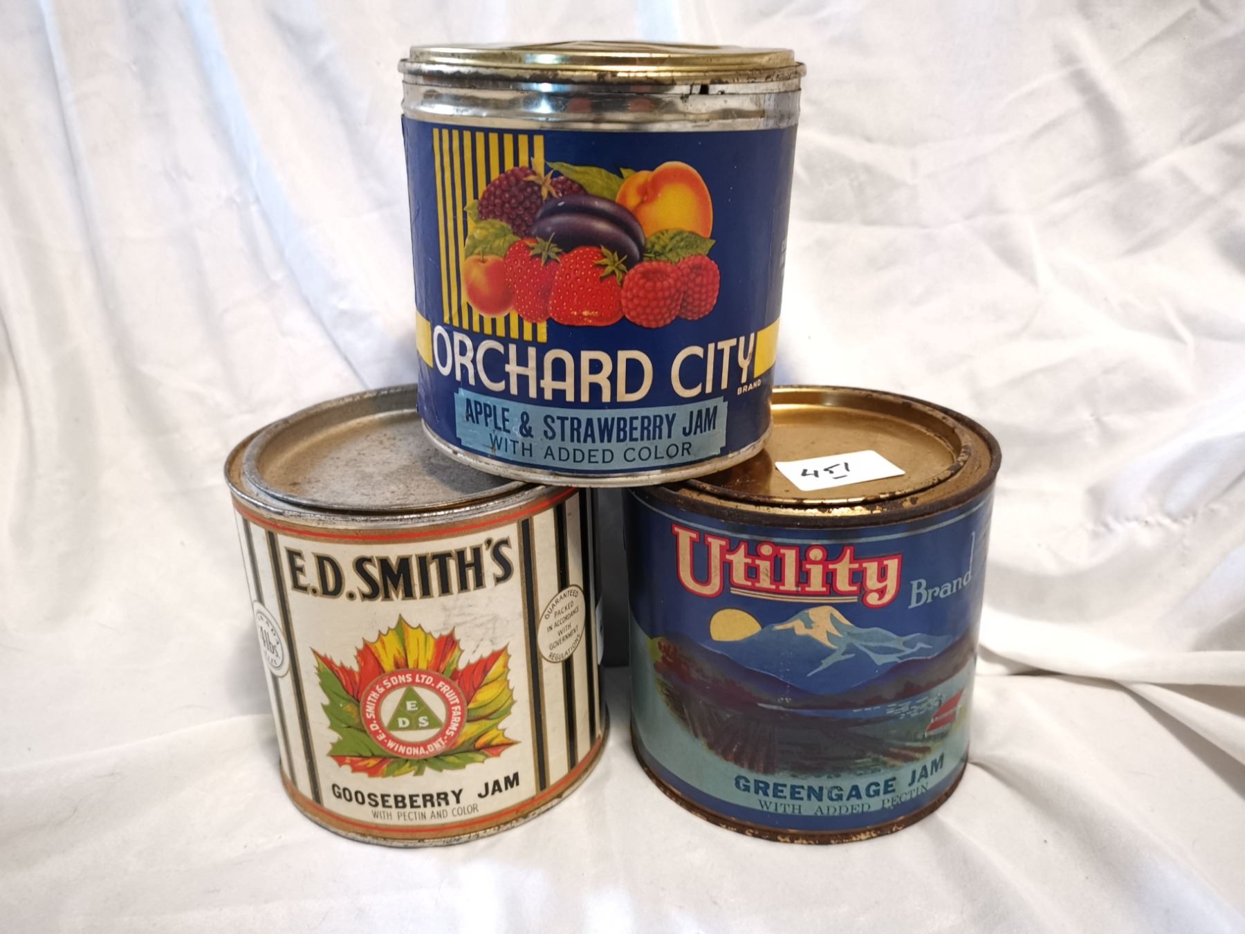 (3) Jam Tins (Smith, Utility, and Orchard)