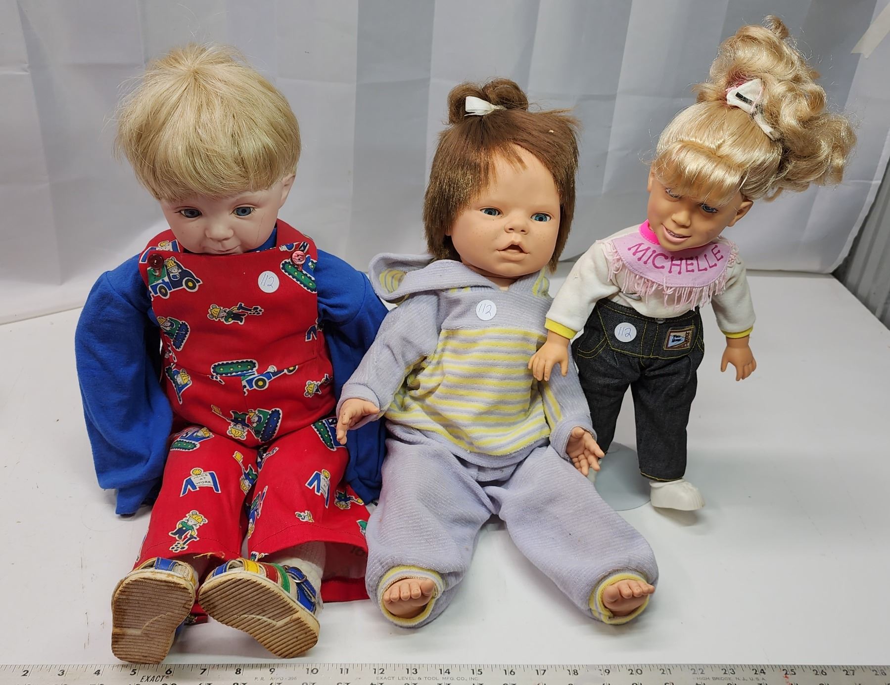 3 Larger dolls - Michelle from full house, red shirt sand filled doll