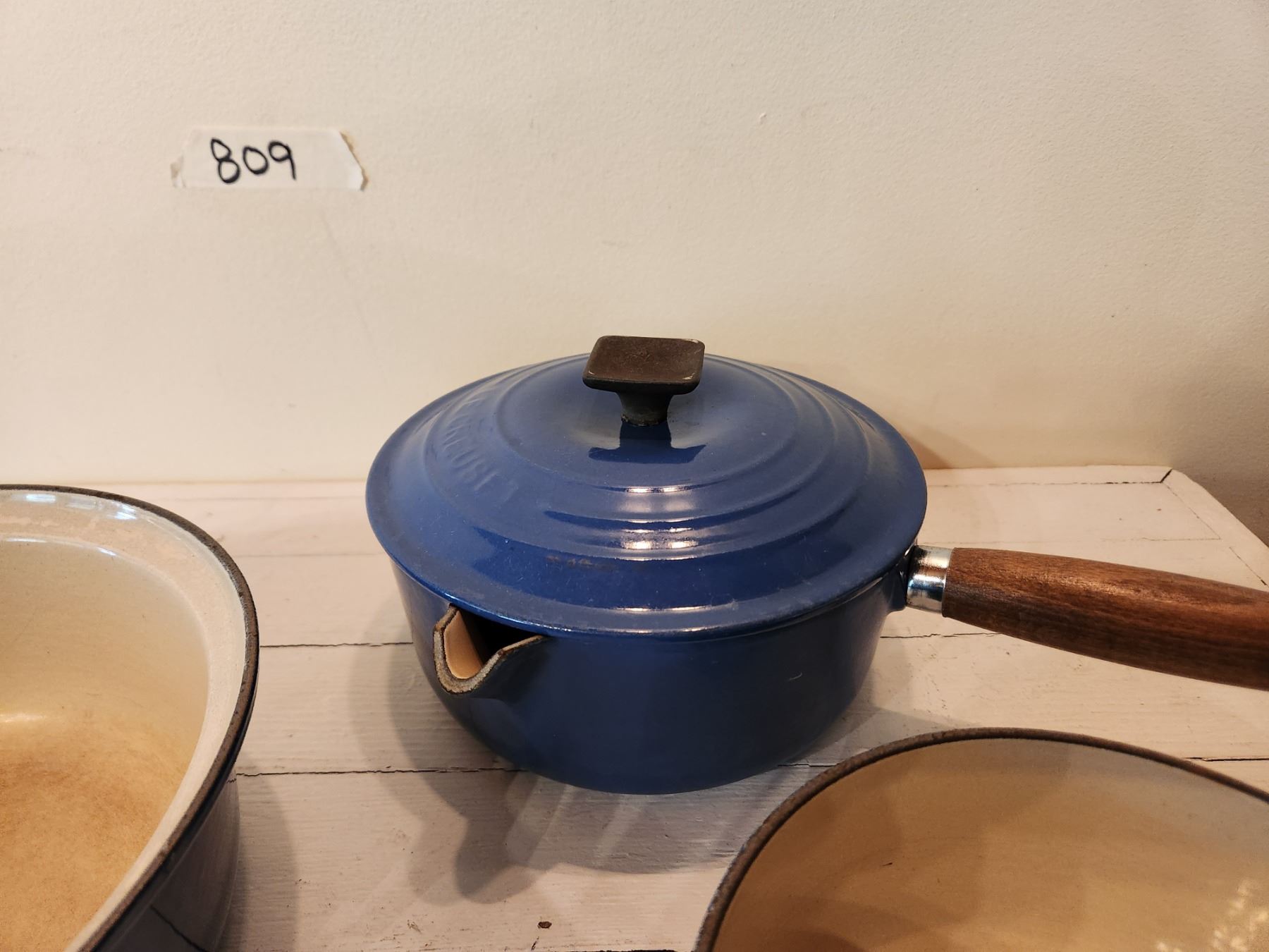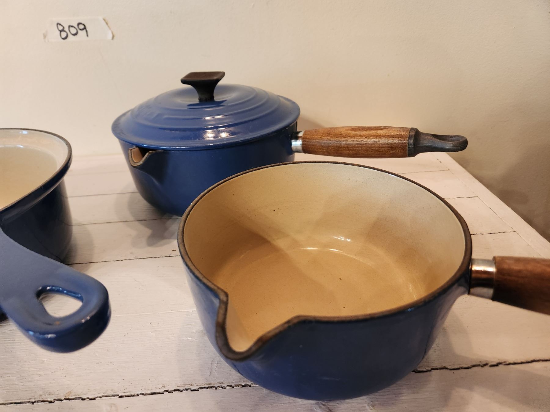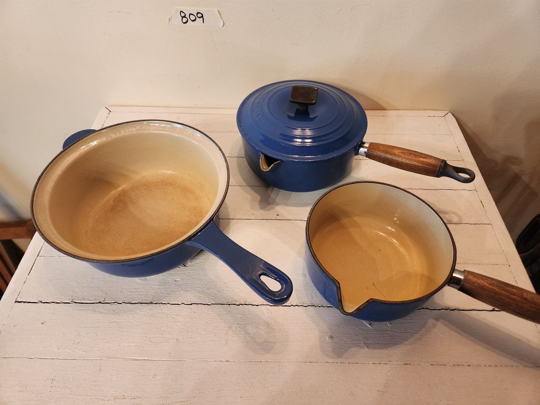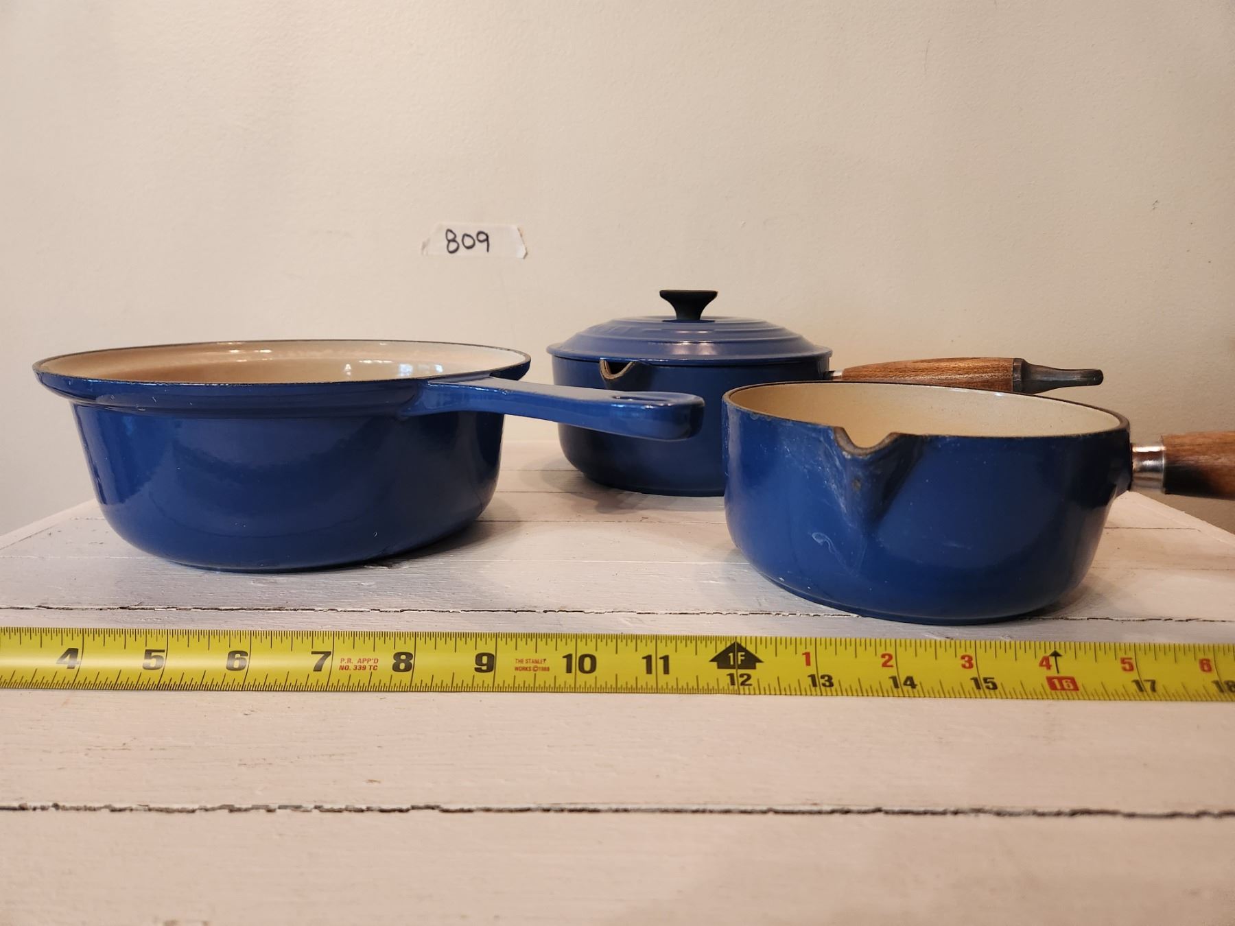 3 Le Creuset Blue cooking pots - 6,7,8 inches