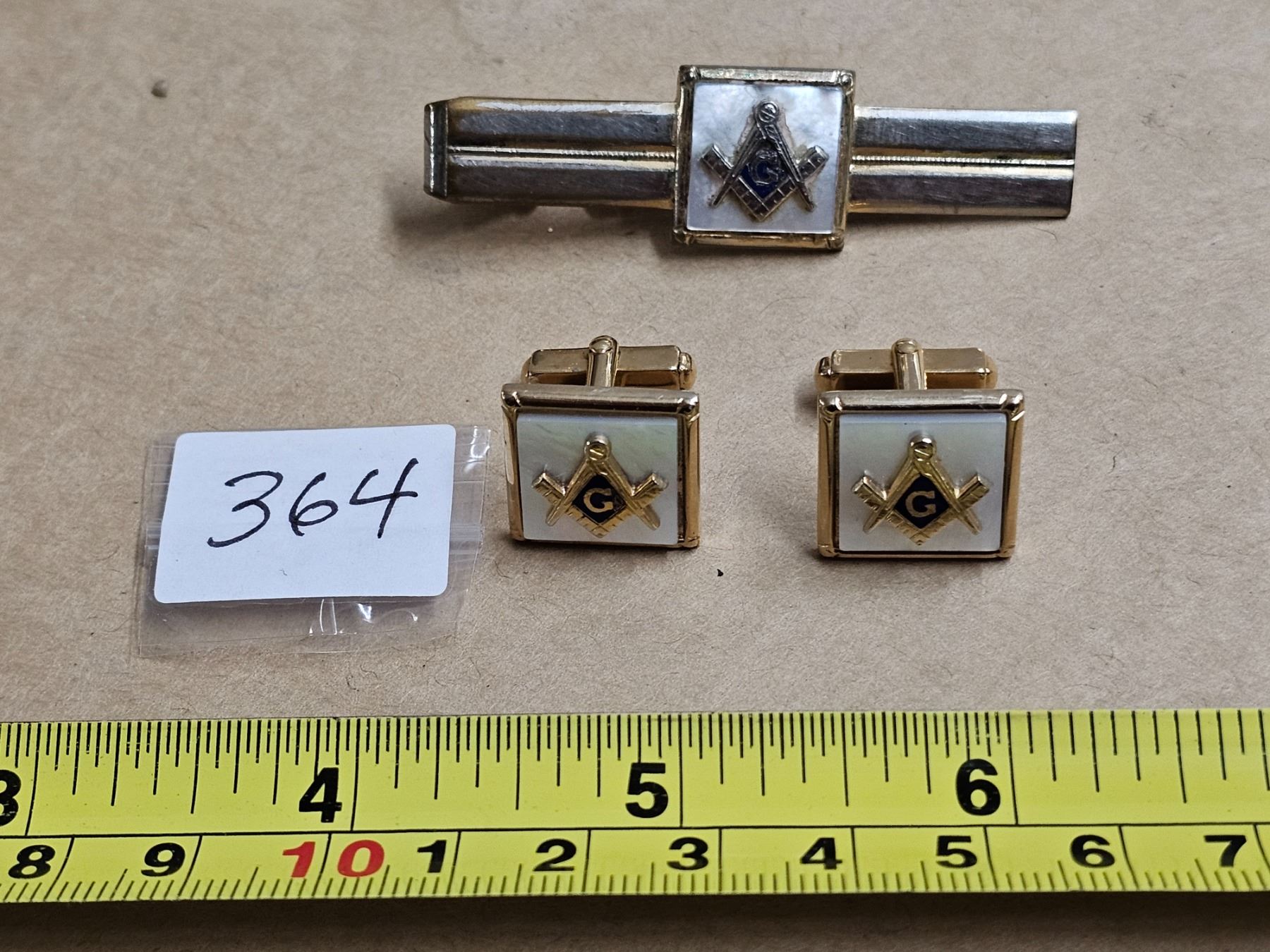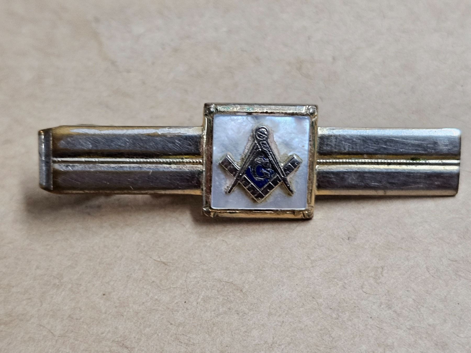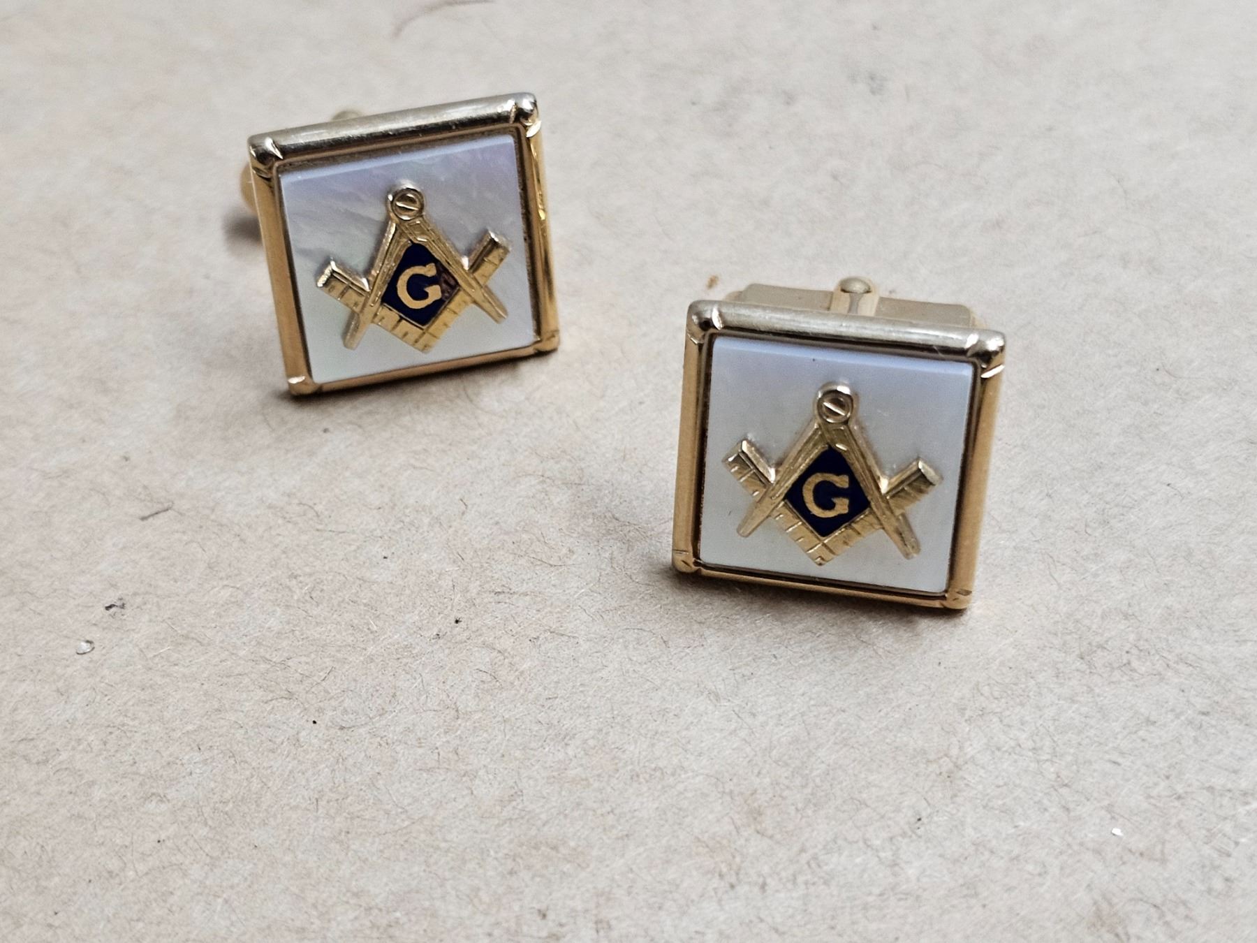 3 Men's Masonic (Mason) pieces - cufflinks, tie clip, mother-of-pearl