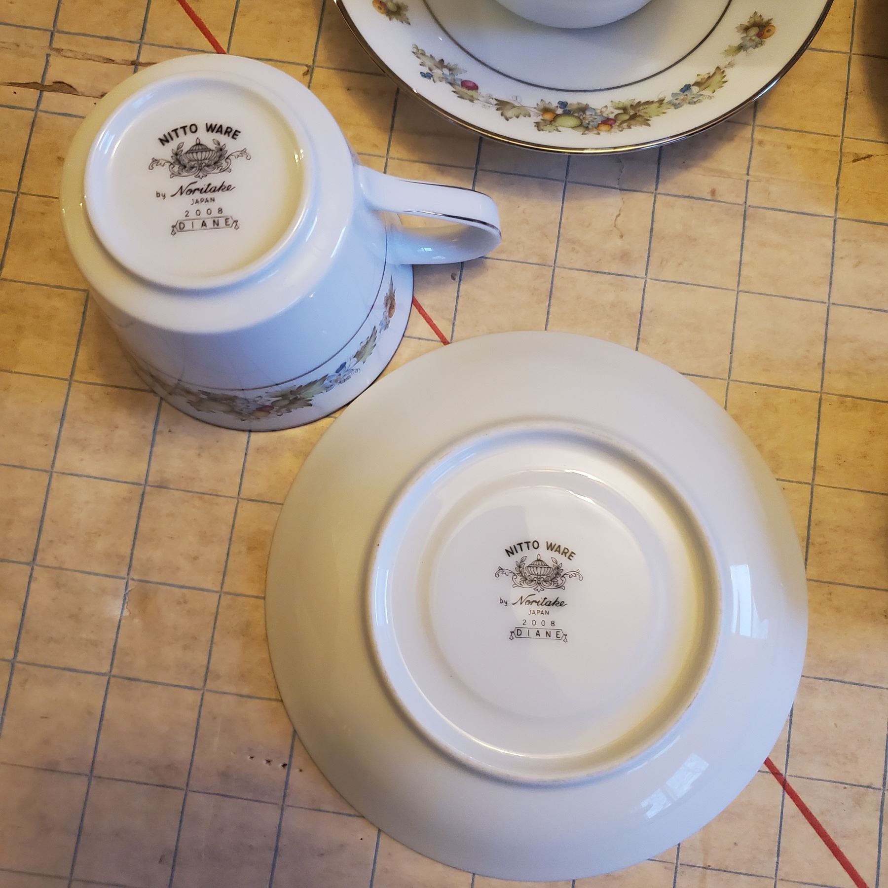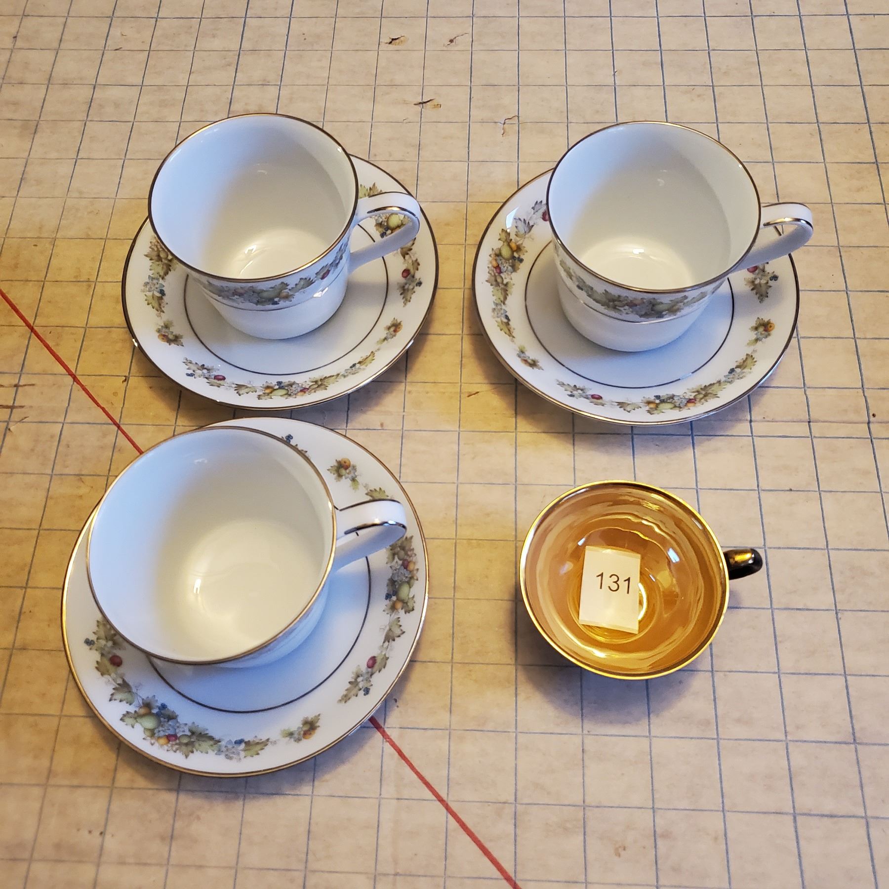 3 Noritake Diane Nitto Wear cup and saucer, Winterling Bavaria Demi cup black and orange