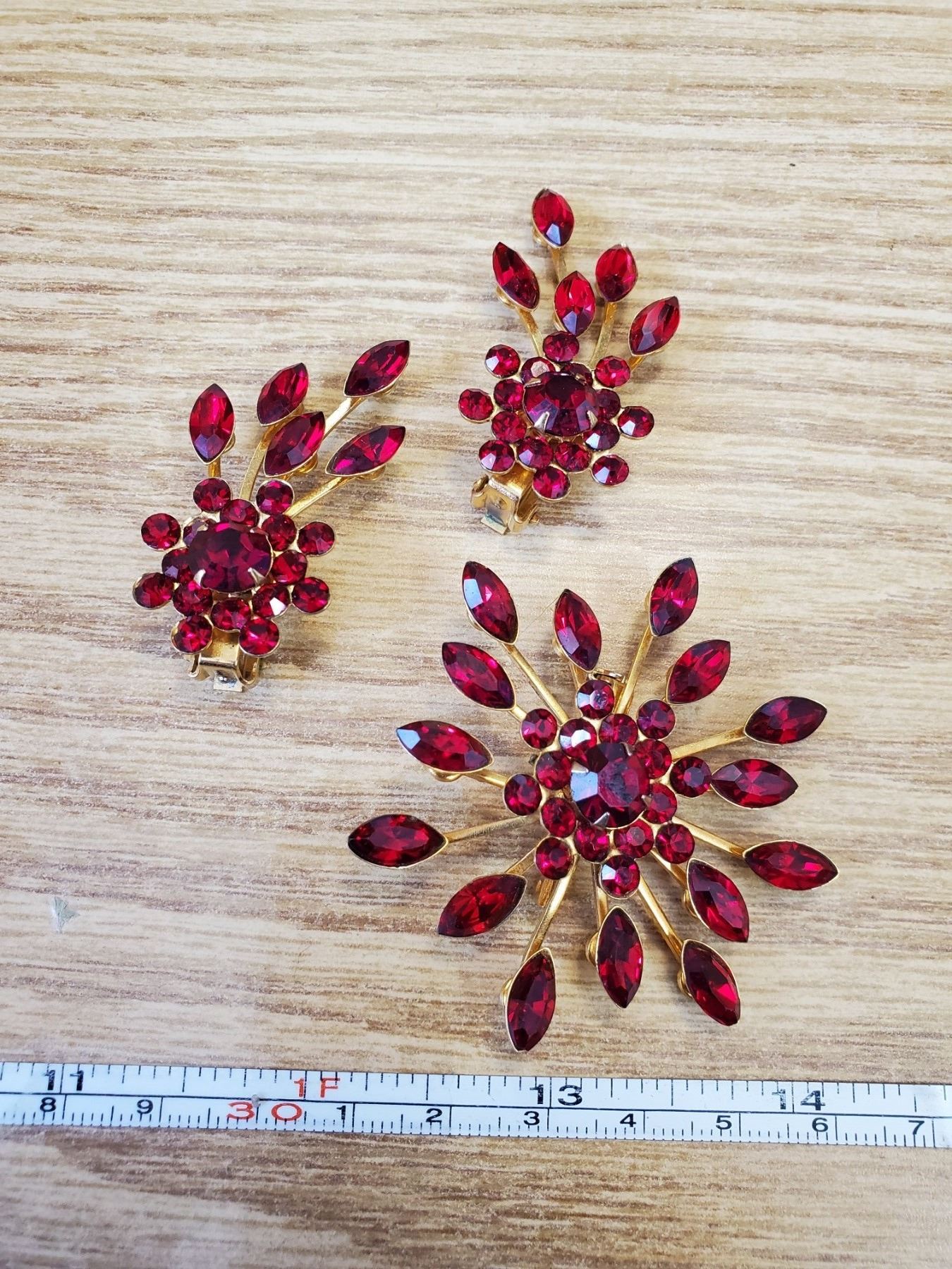 3 PIECES RED RHINESTONE SET- MARKED PATENT PENDING