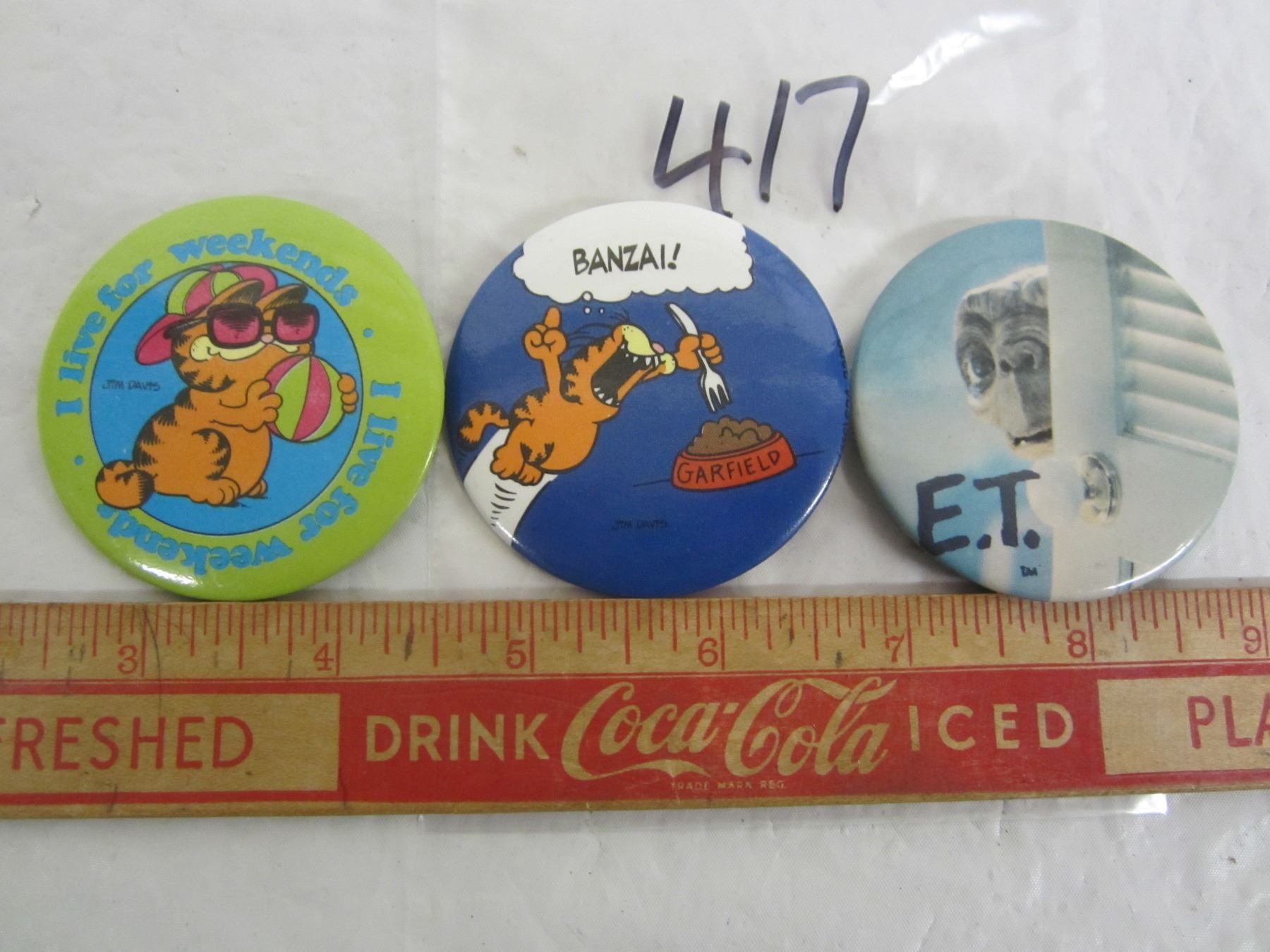 3 PIN BACK BUTTONS ET AND GARFIELD