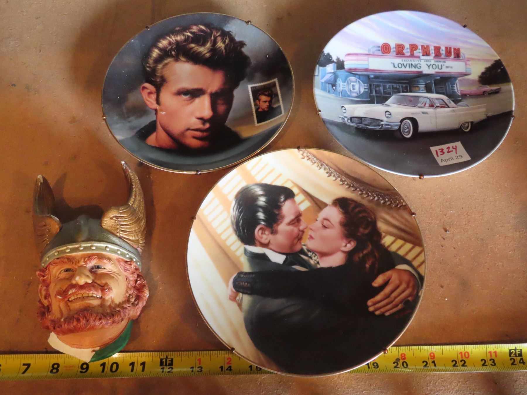 3 Painted plates + Viking Head Chalk art - wall hanging