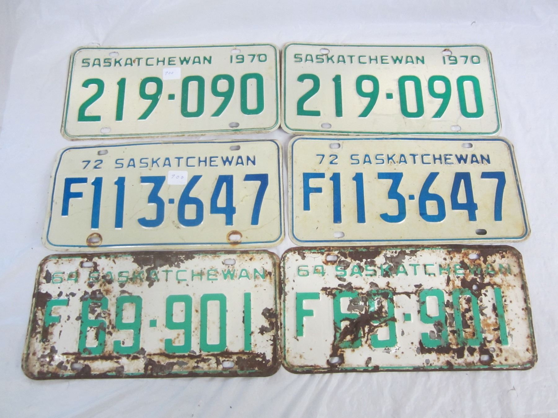 3 Pair of Saskatchewan License Plates 1964, 1970, 1972,