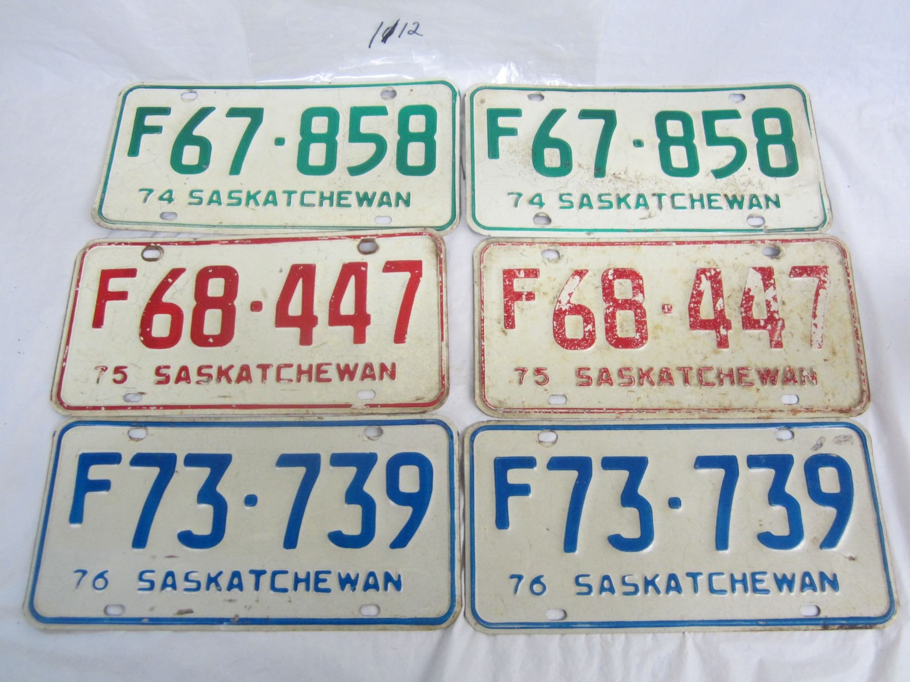 3 Pairs of Saskatchewan 1974, 75, 76 License Plates