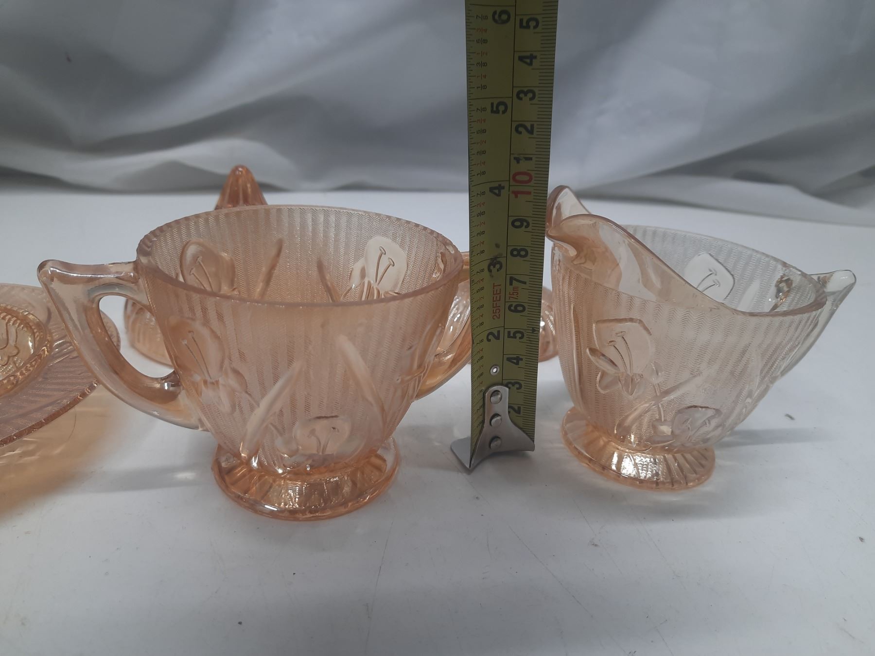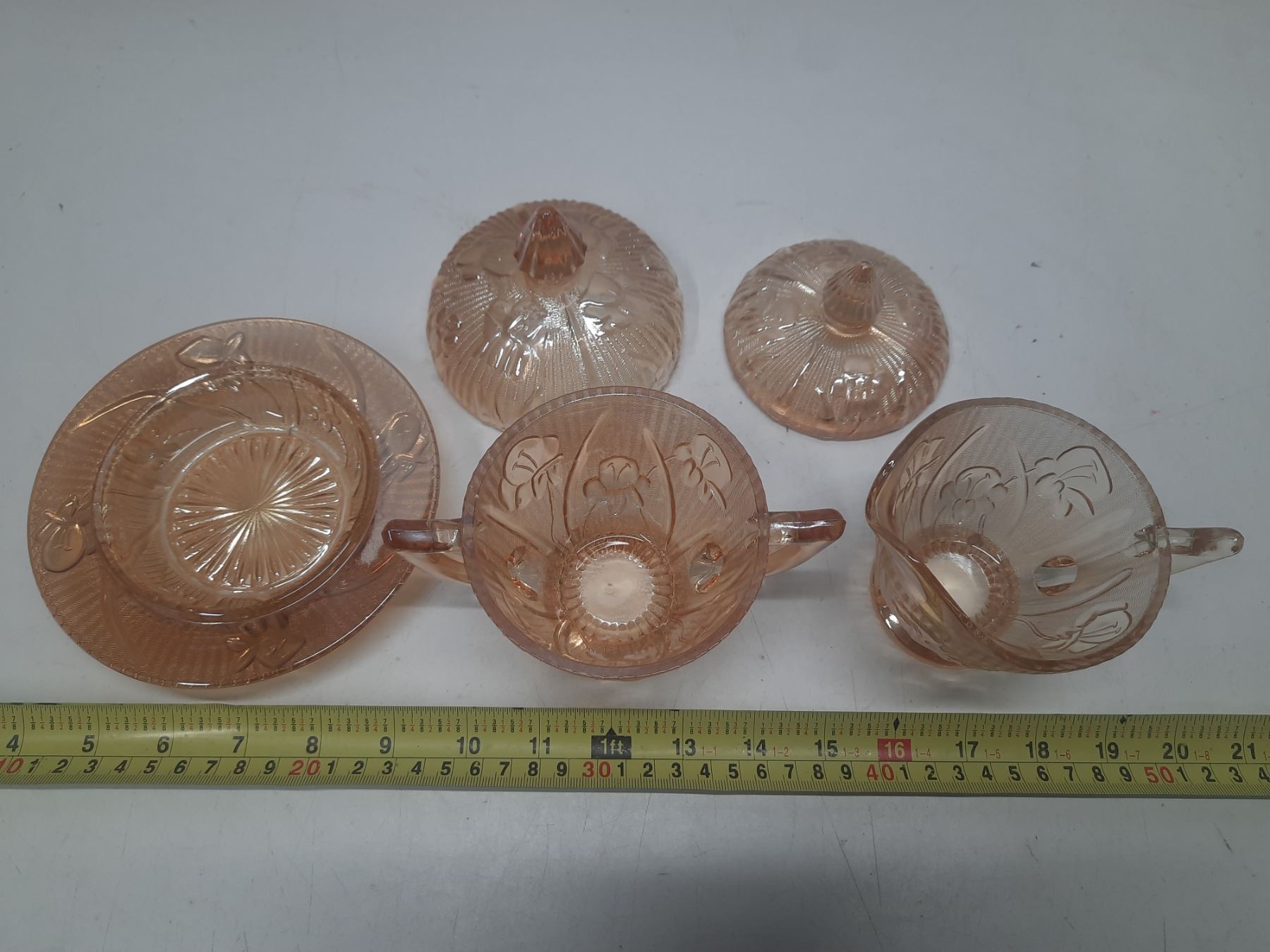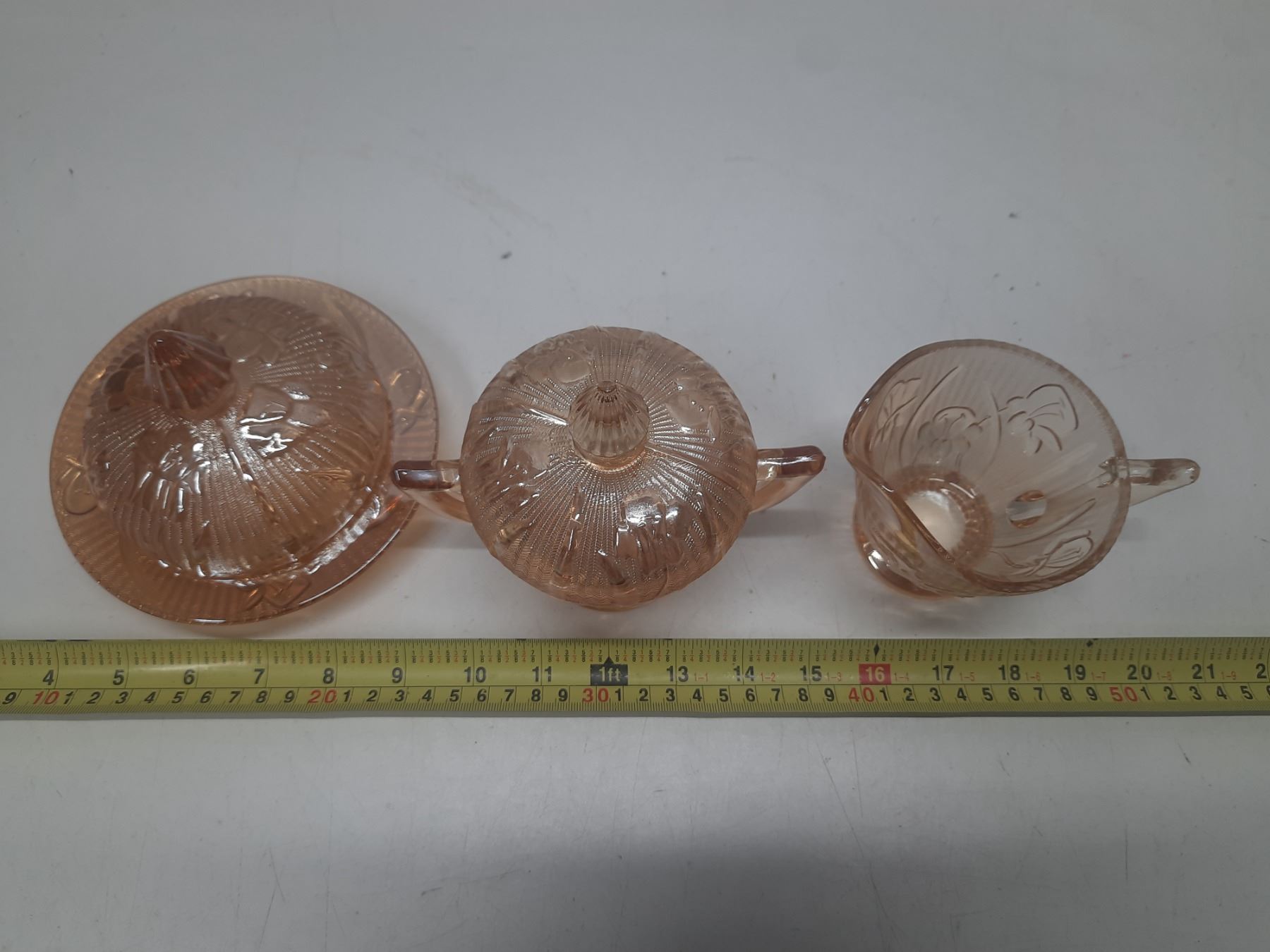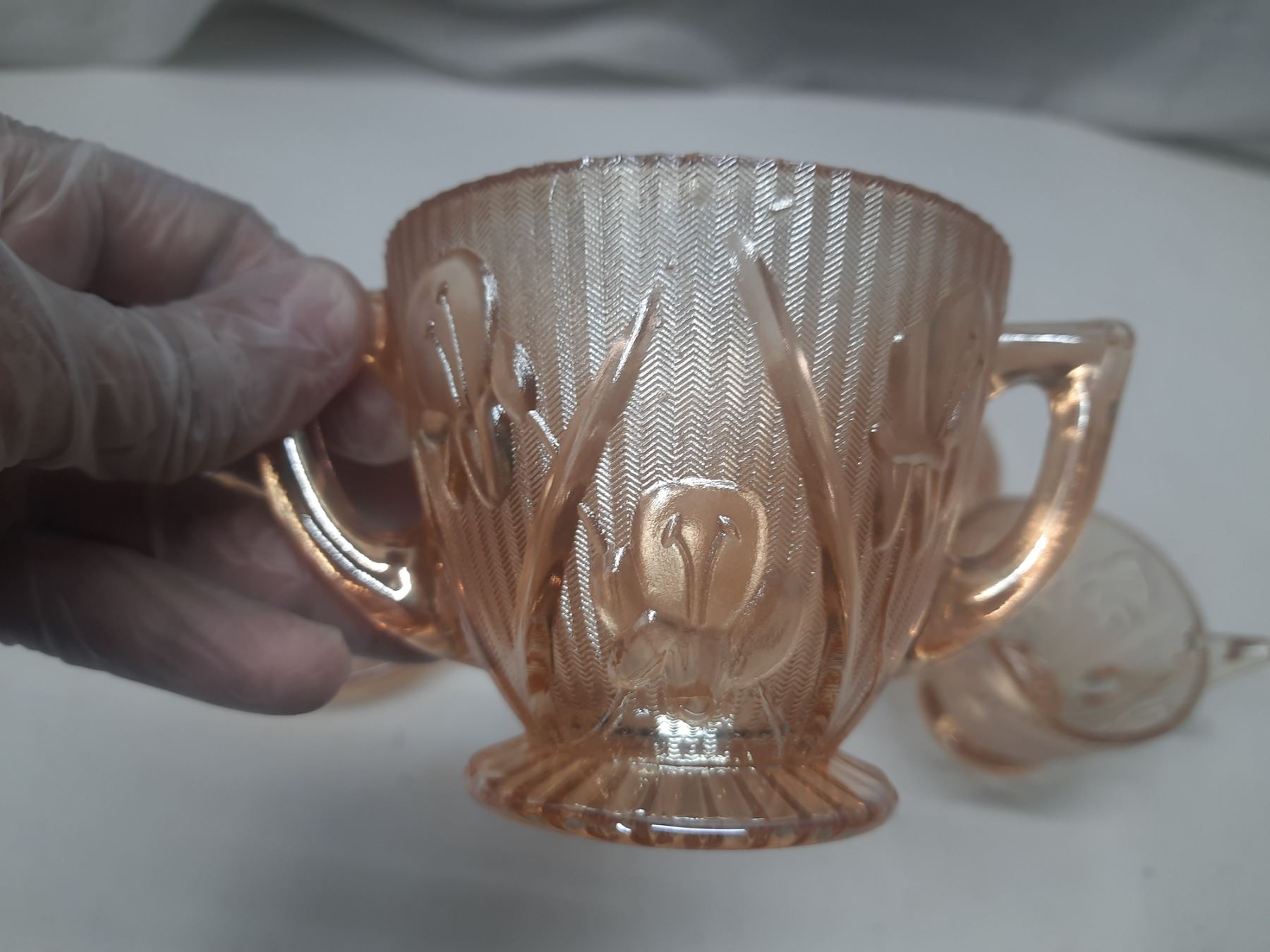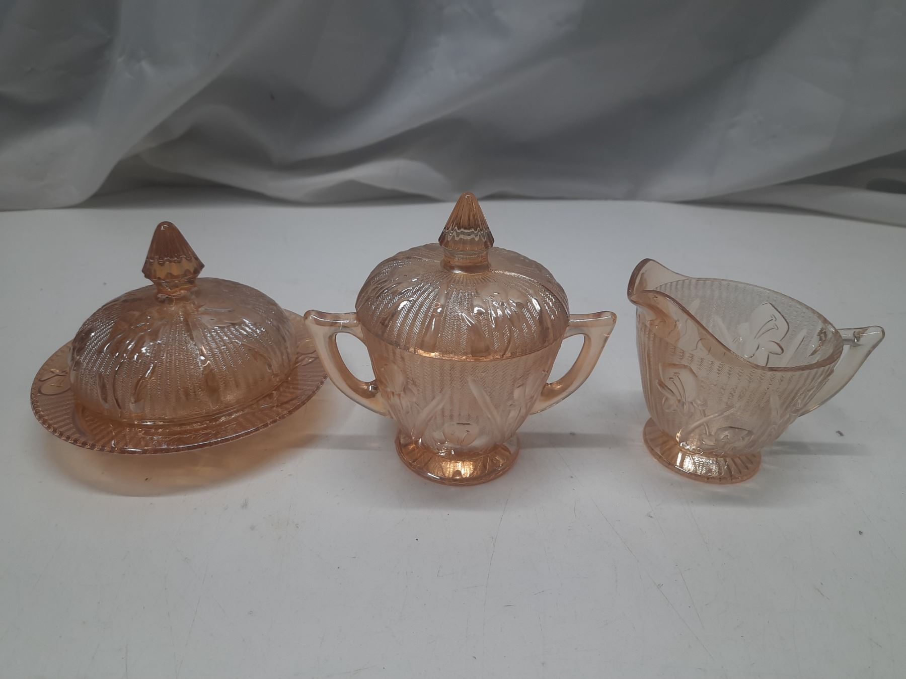 3 Piece Iris's Herring Bone Depression Glass. Creamer, Suger, Butter Dish.