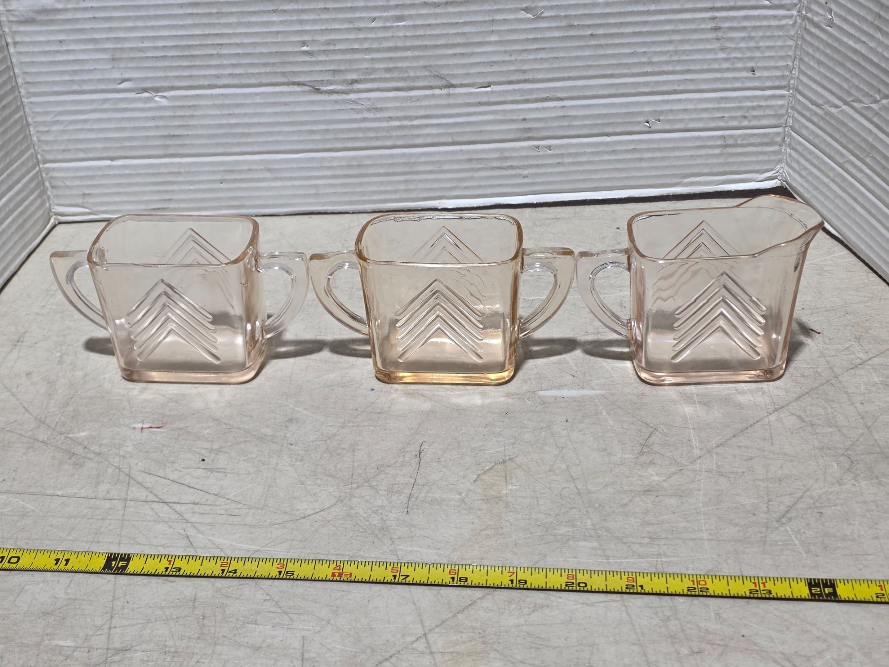 3 Pink depression glass items- cream and sugar