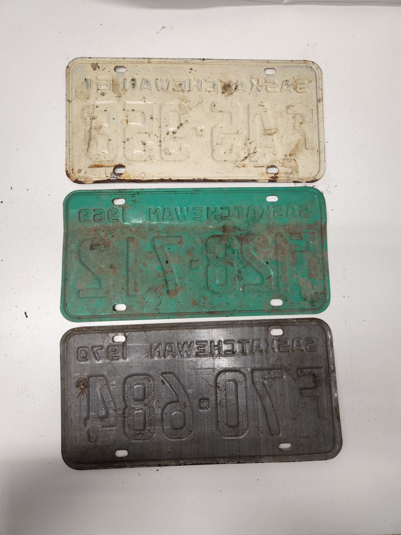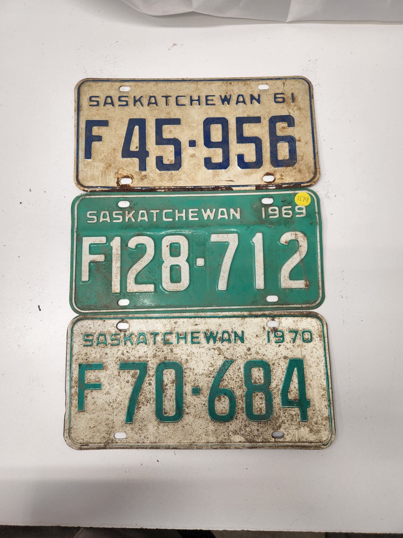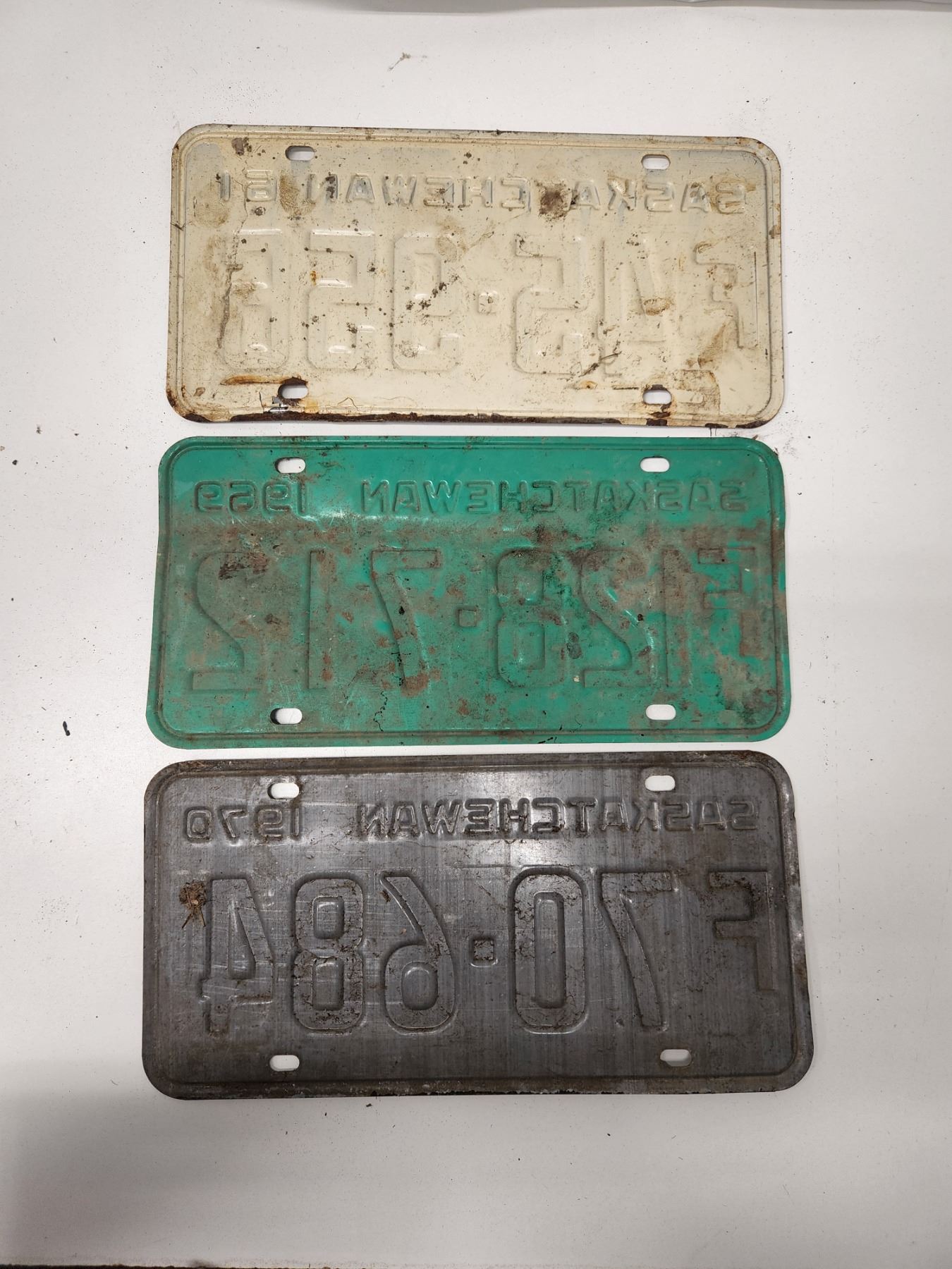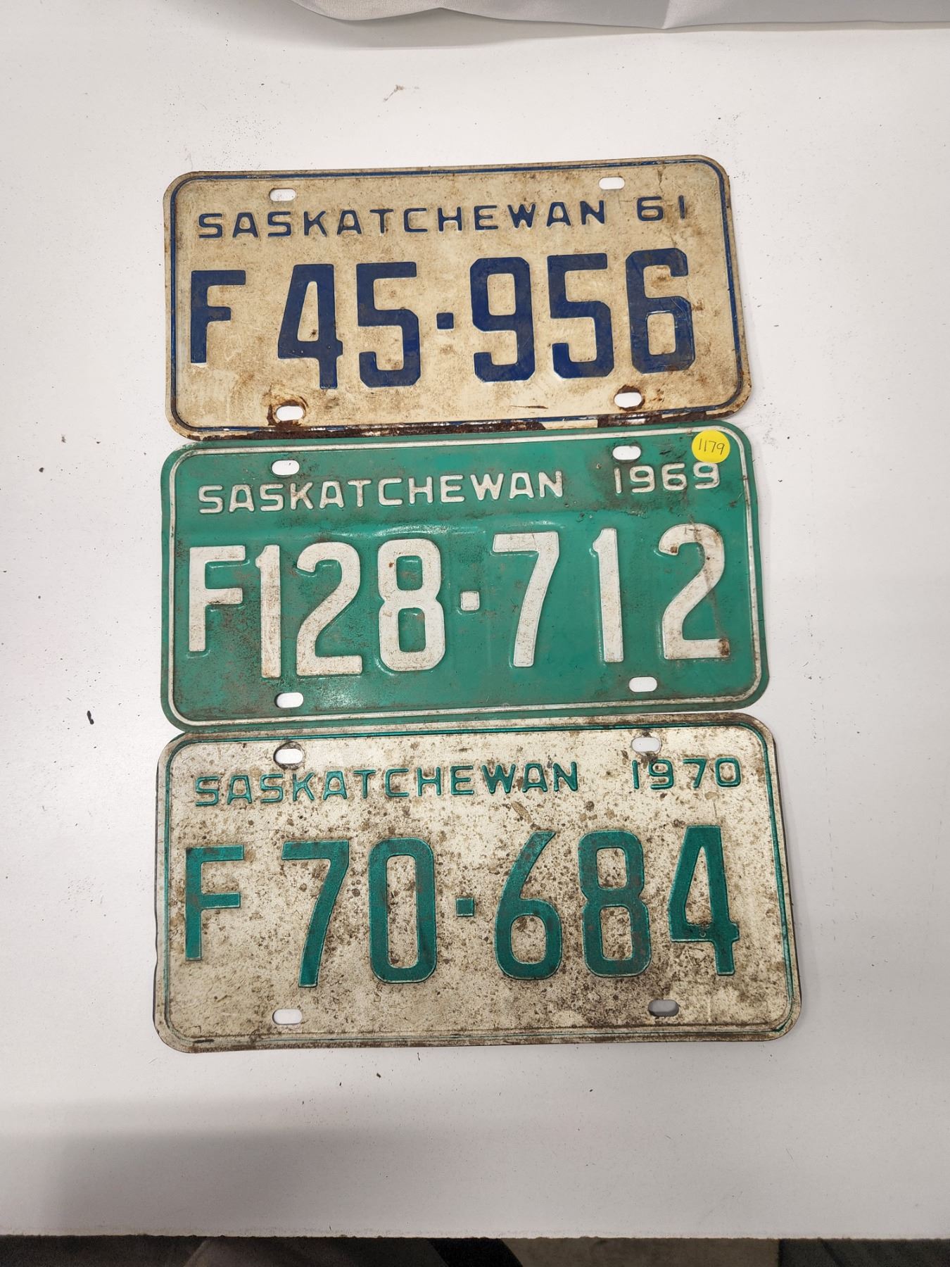 (3)Plates: F45-956 61-Sask, F128-712 1969-Sask, F70-684 1970-Sask