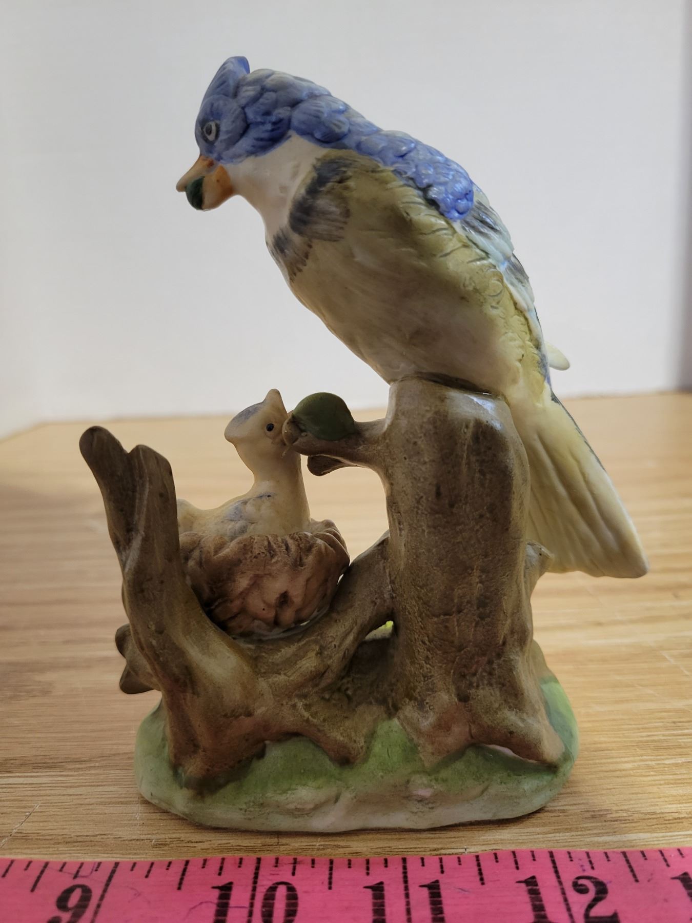 3 Porcelain Bisque Figurines Blue Jay, Swan, Duck 1940-50