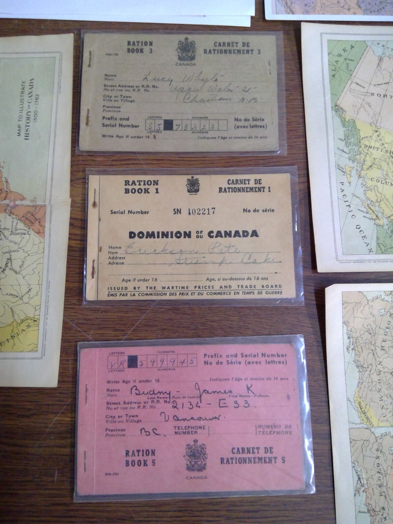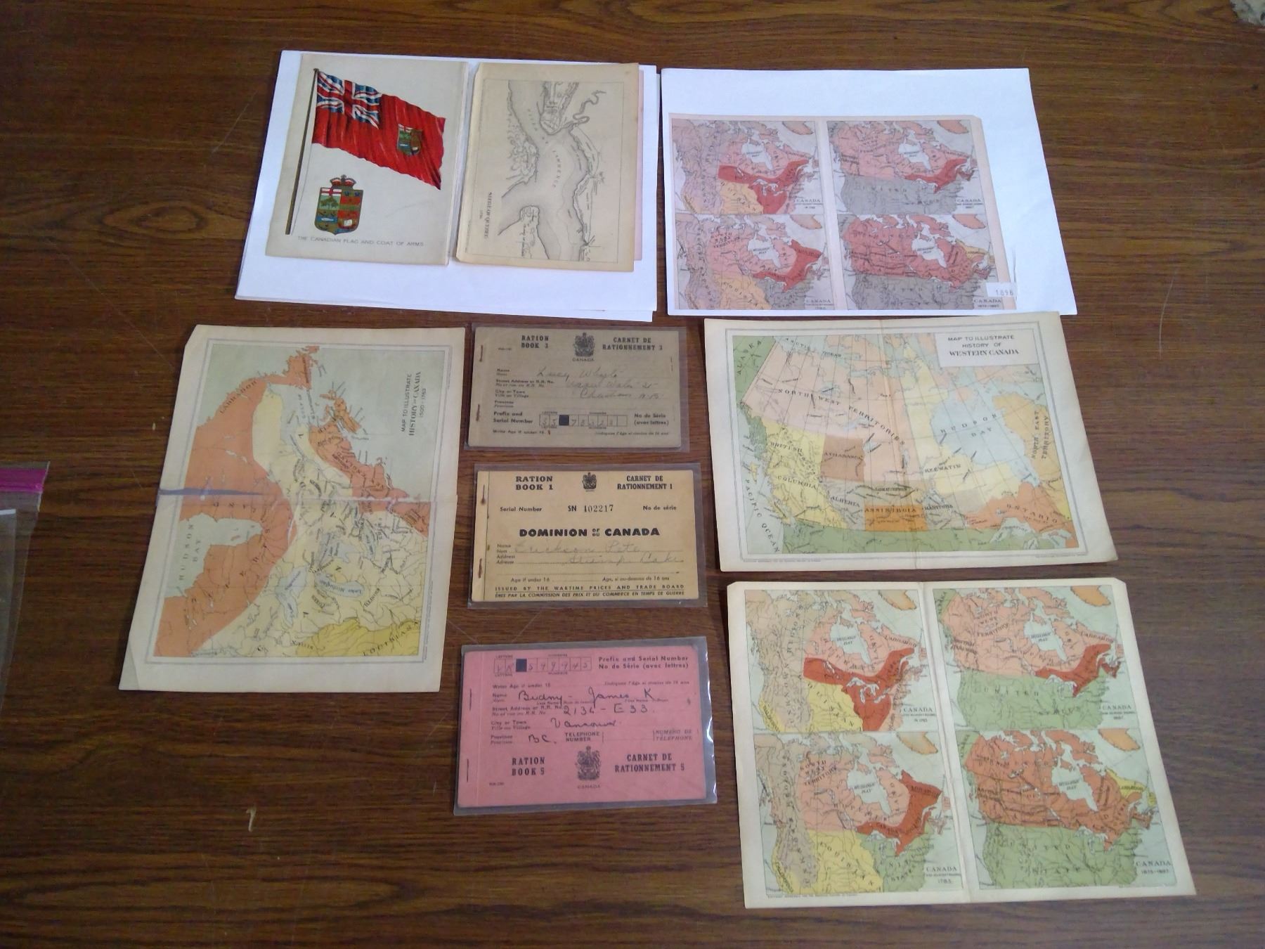 3 RATION BOOKS, AND VINTAGE CANADIAN MAPS
