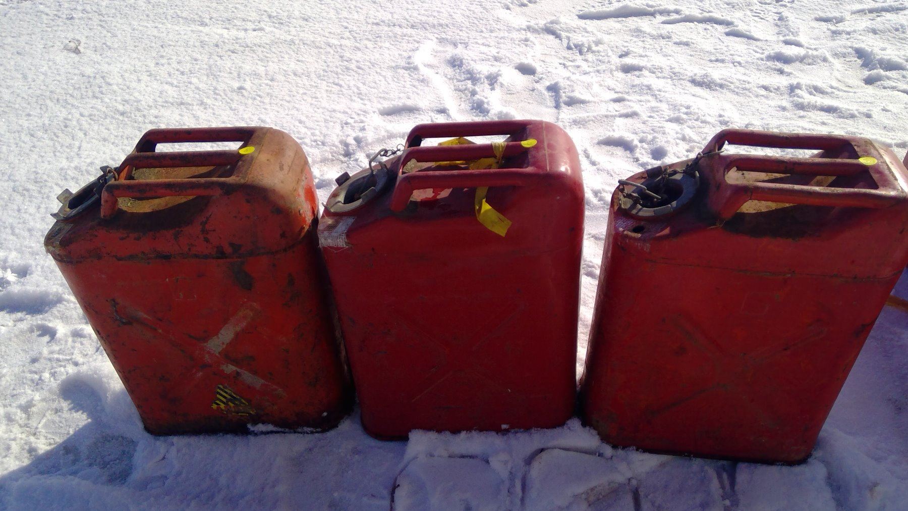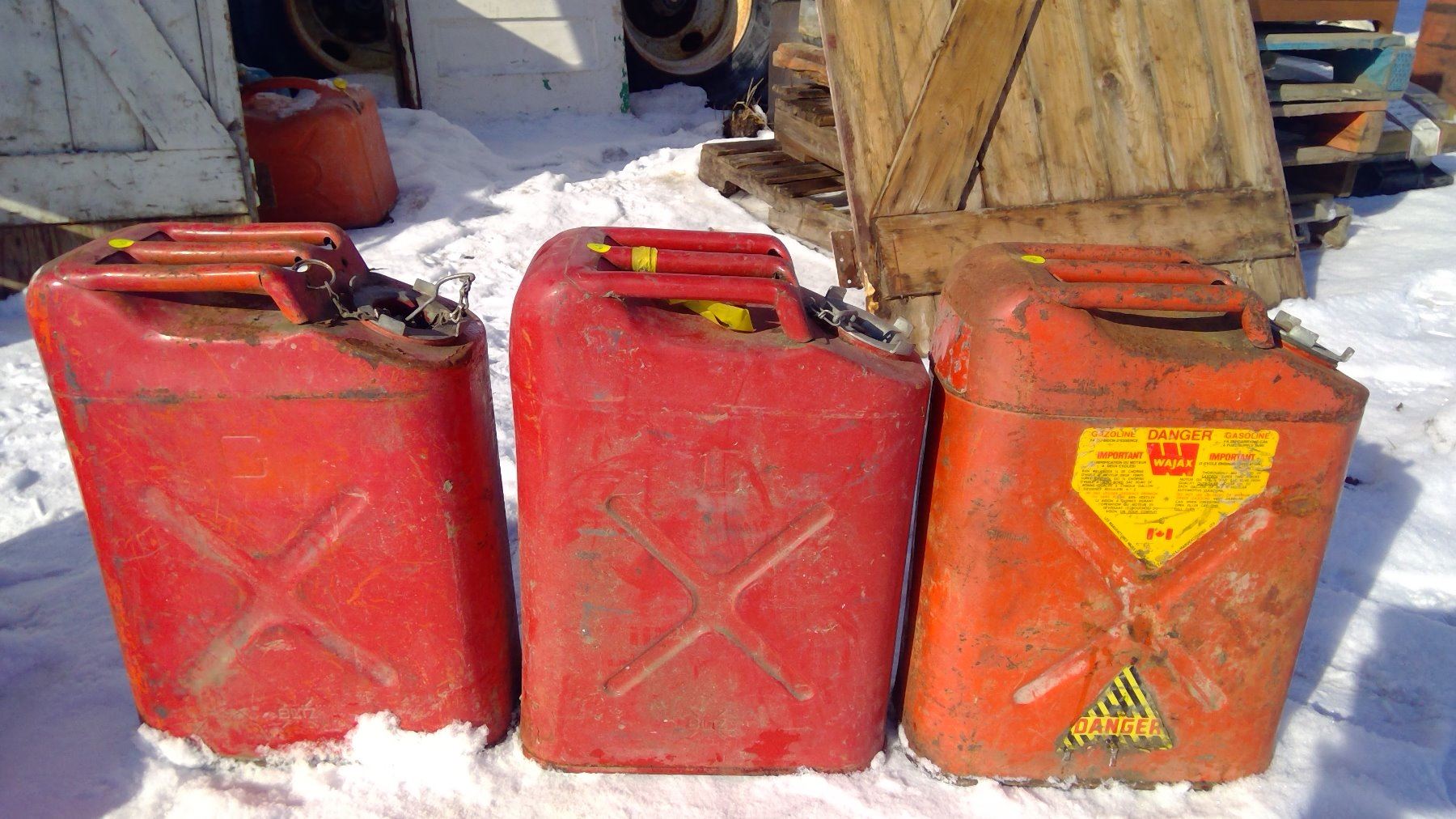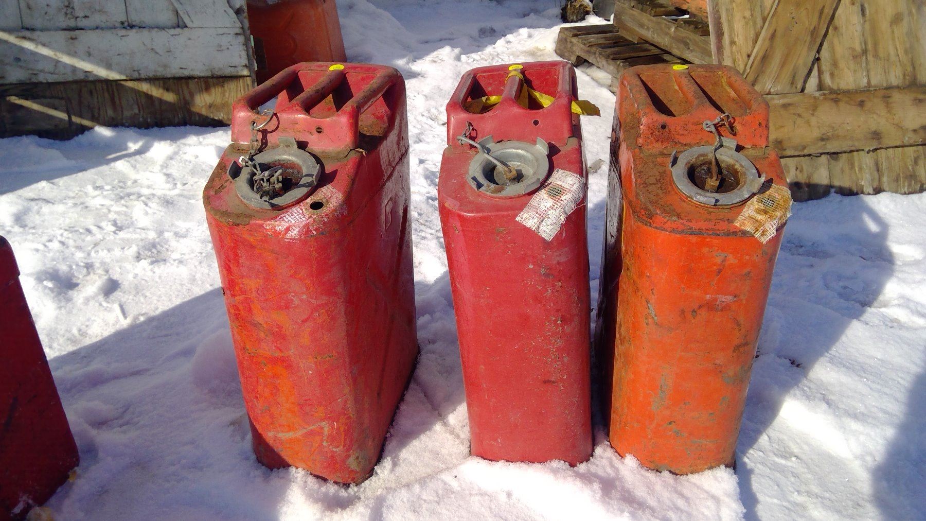 (3) RED METAL GAS CANS