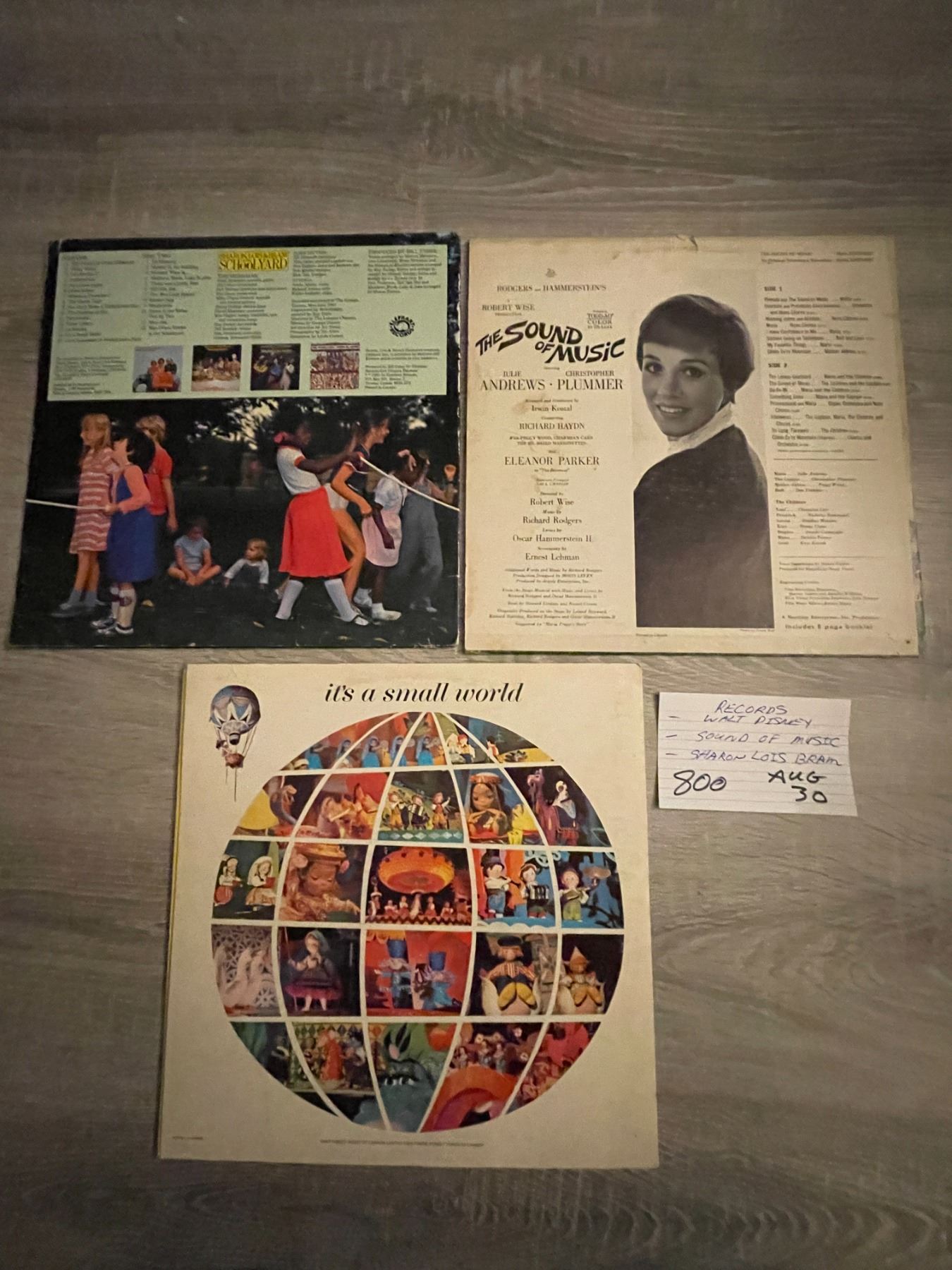 3 Records - Walt Disney; Sound of Music; Sharon, Lois & Bram
