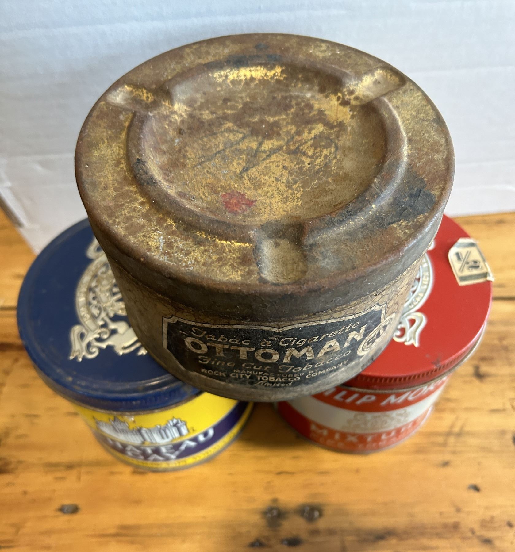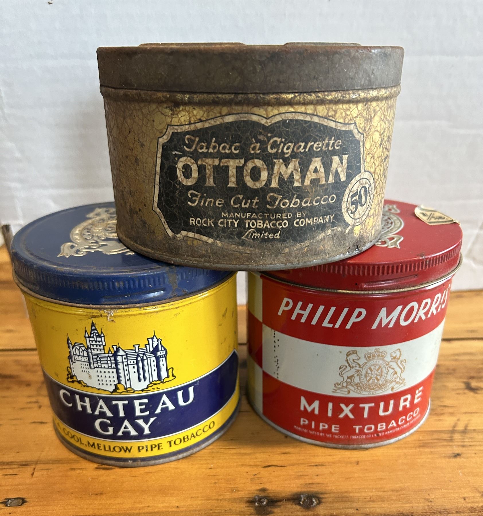 3 Round tobacco tins - Ottoman, Philip Morris, and Chateau Gay