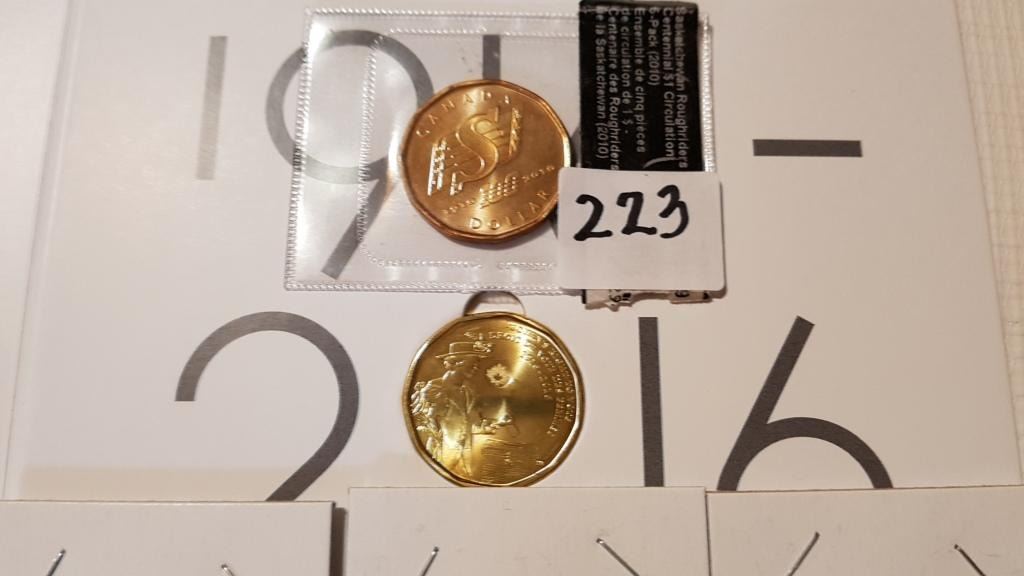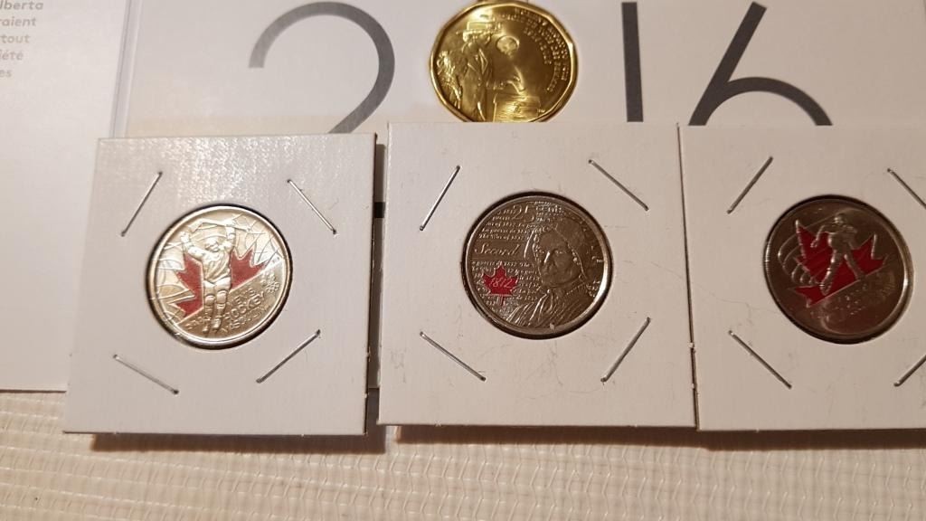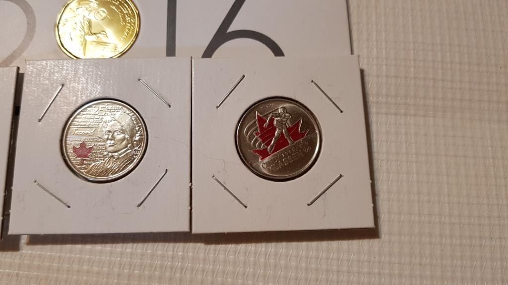 3 SPECIAL 25 CENT COLORED, 2 UNC LOONIES