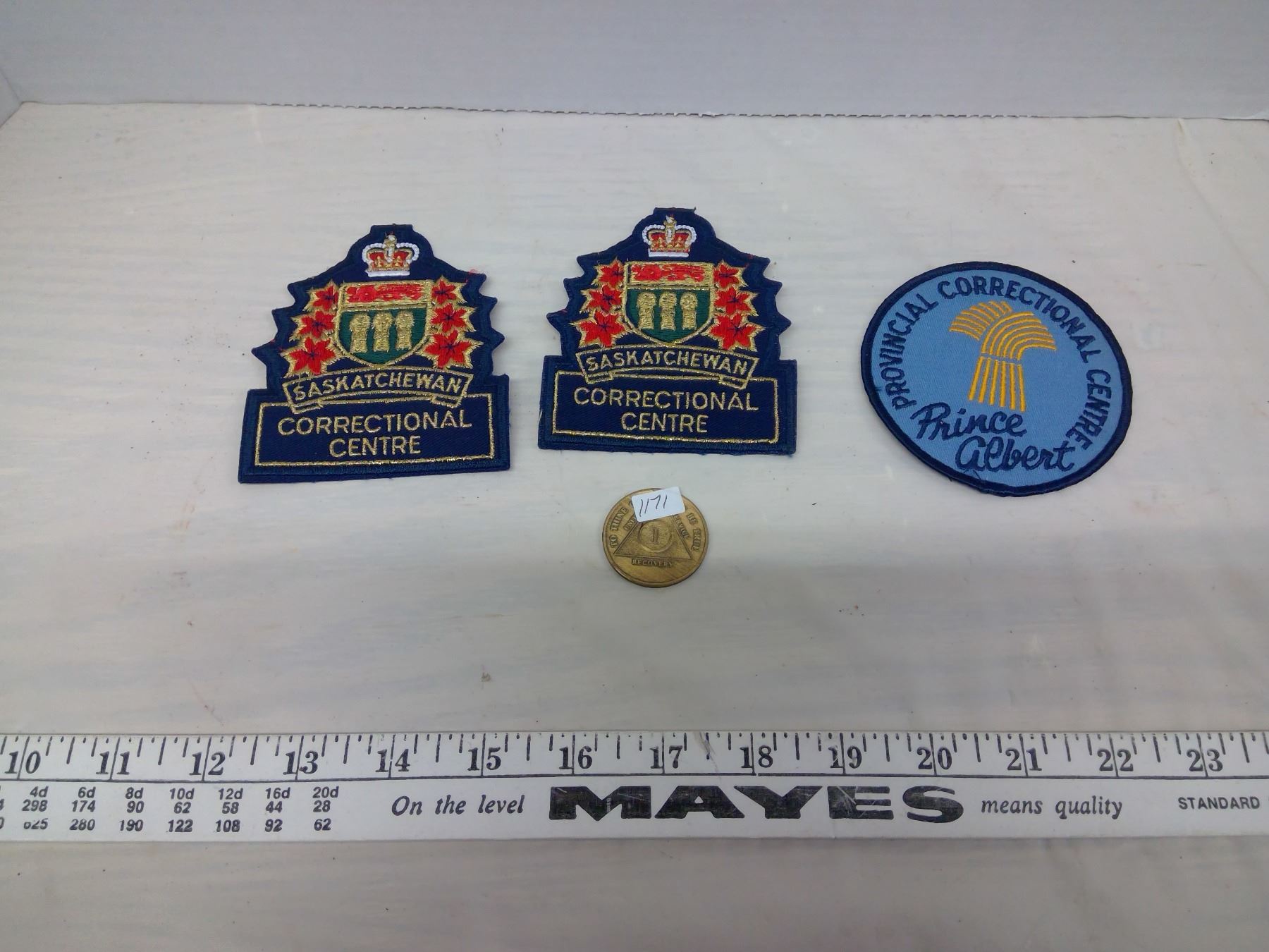 3 Sask. Corrections Patches, 1 AA One Month Token