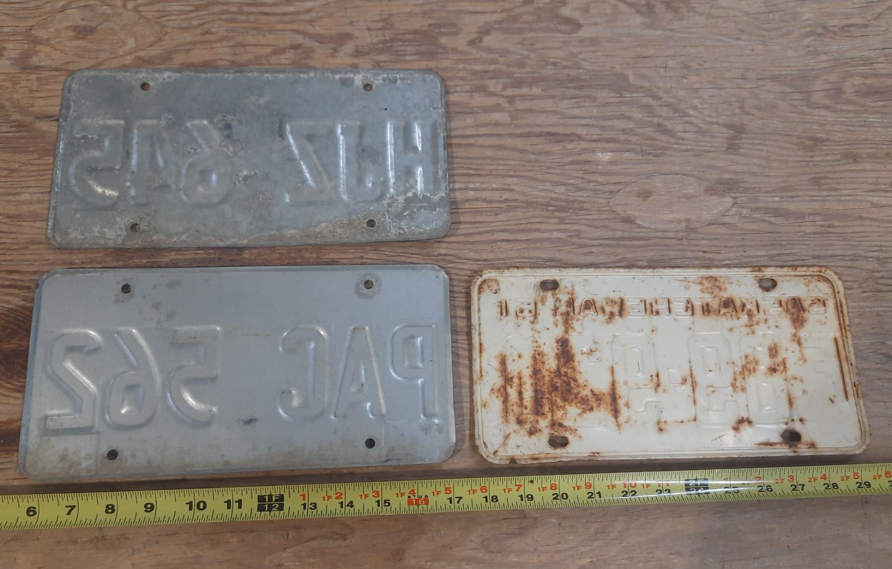 (3) Saskatchewan License Plates. [(1) 1961 and (2) 1980's]