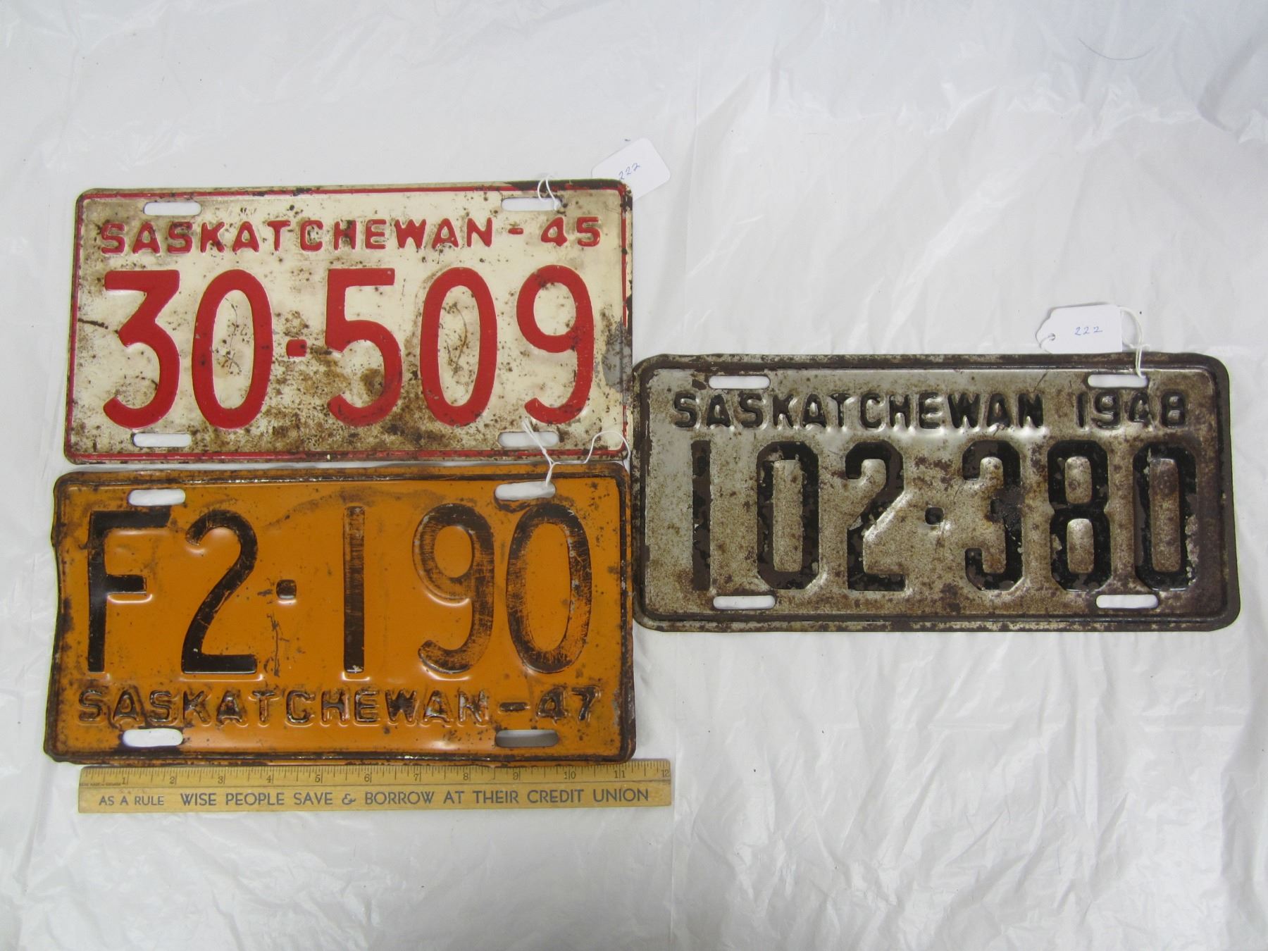 3 Saskatchewan License Plates 1945 ,1947 ,1948