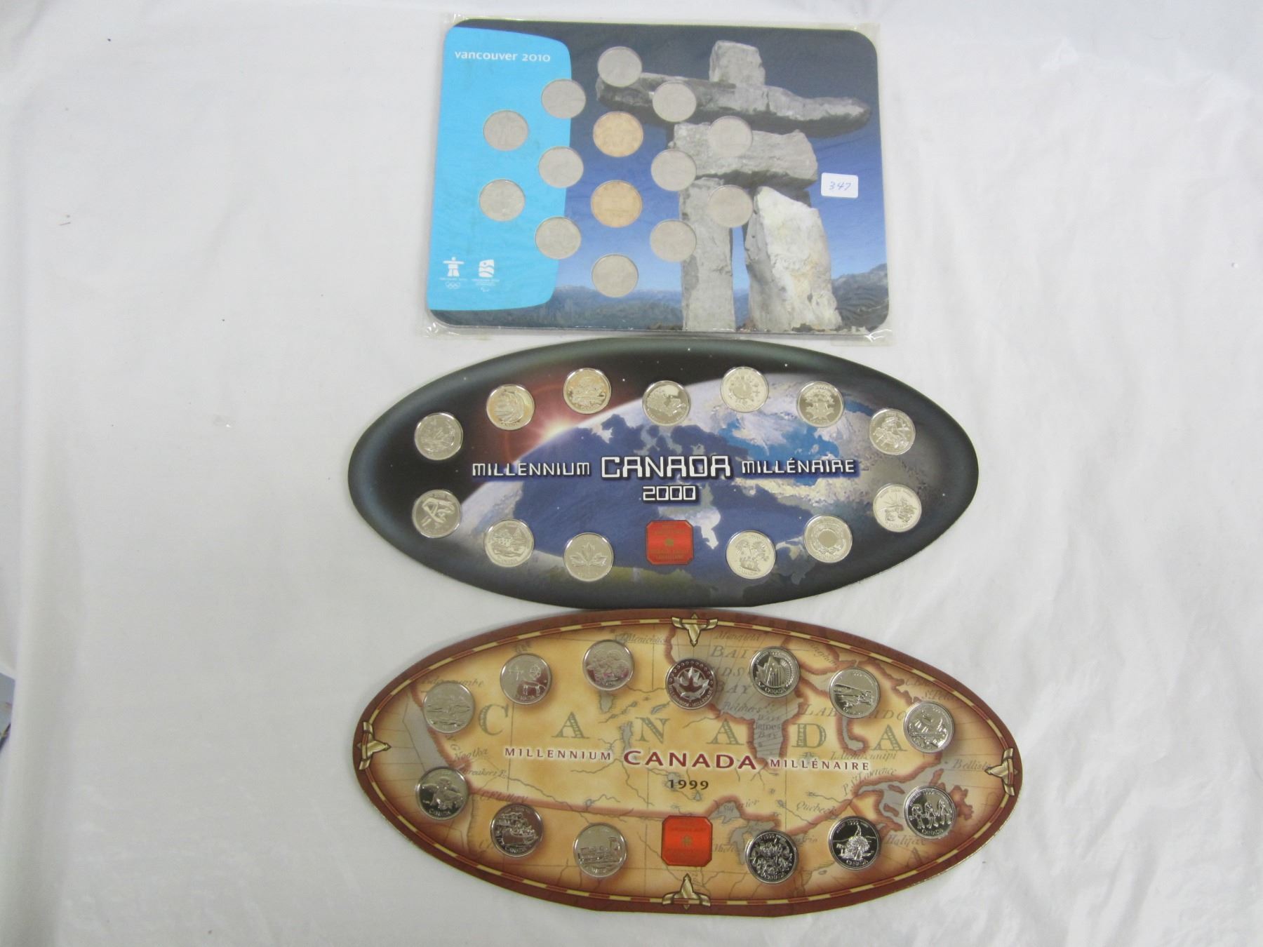 3 Sets of 25 cent coins 1999, 2000, 2010