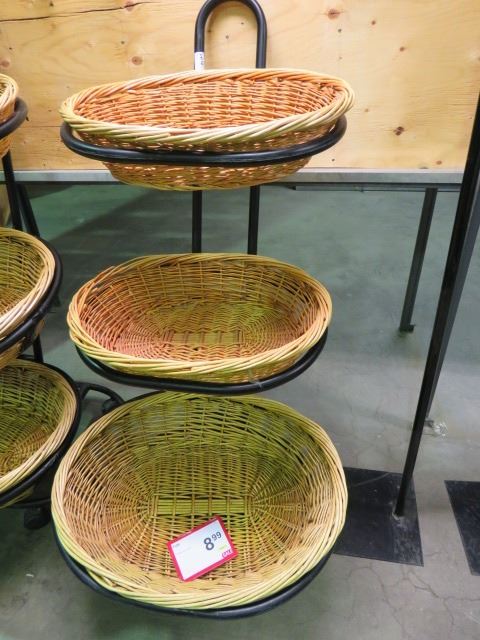 3 TIER WICKER BASKET PRODUCT MERCHANDISING STAND, METAL FRAME 4'6"H
