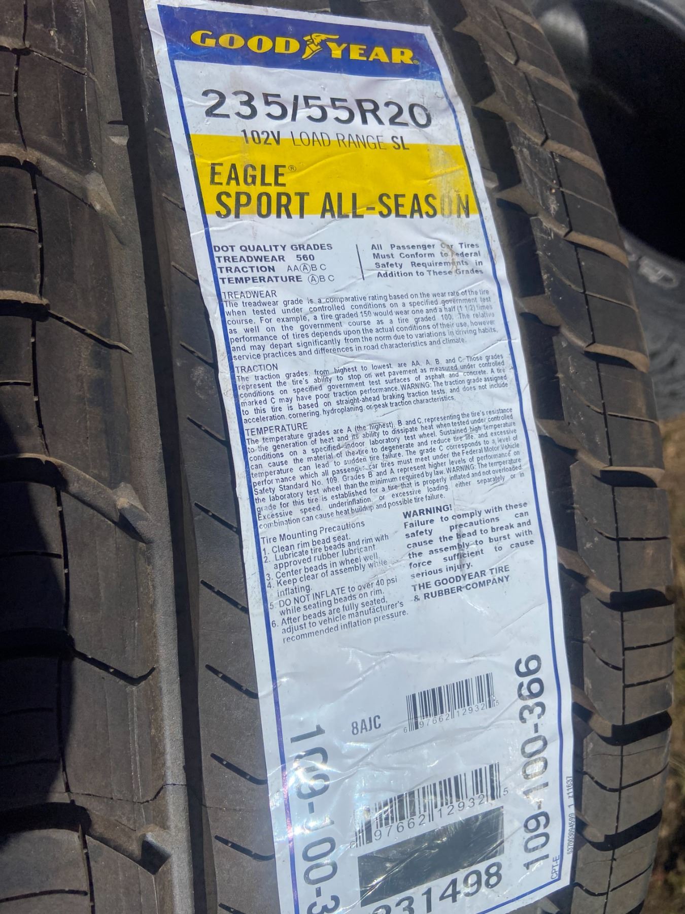3 TIRES 235-55-20 GOODYEAR EAGLE SPORT NEW
