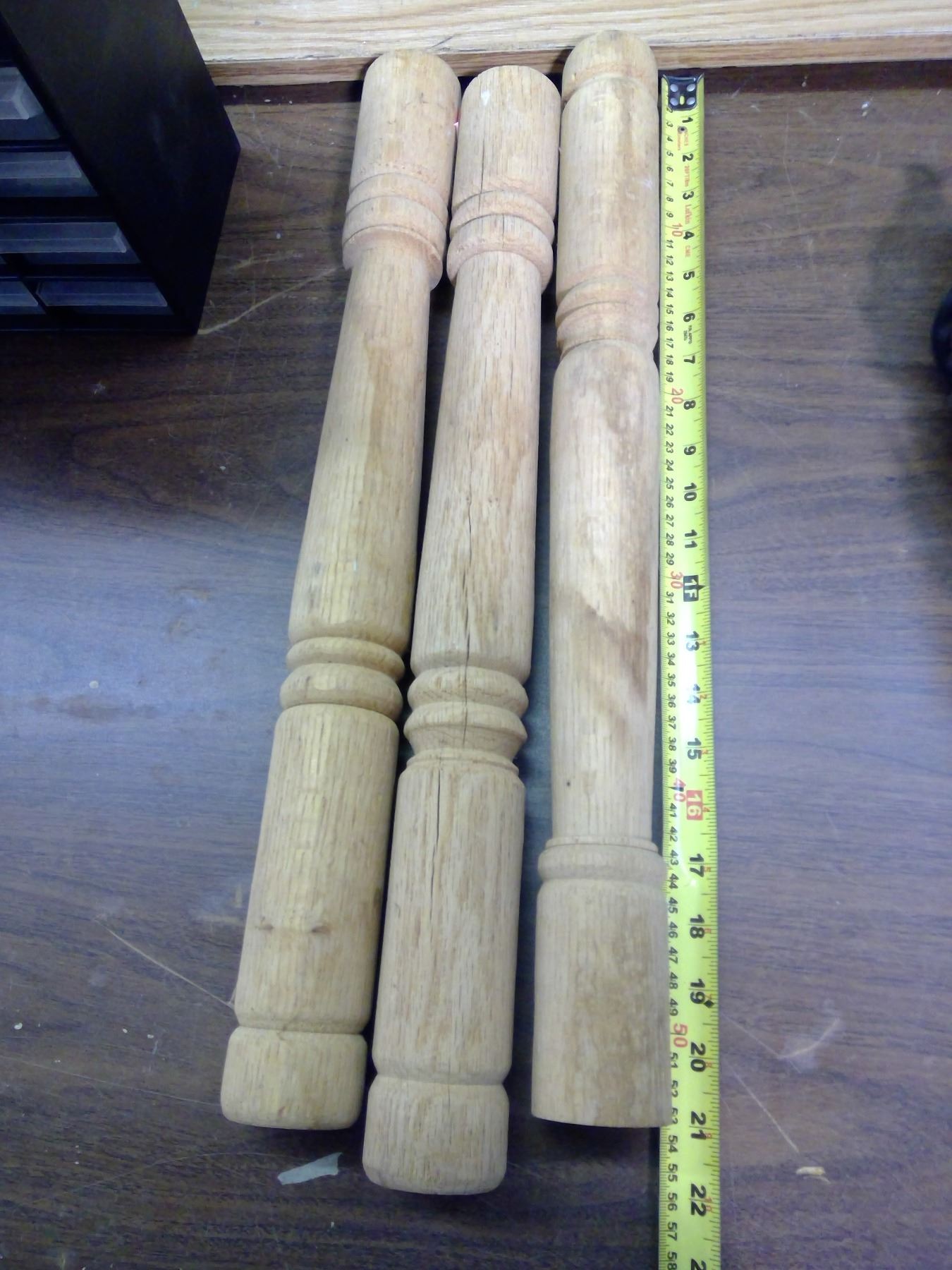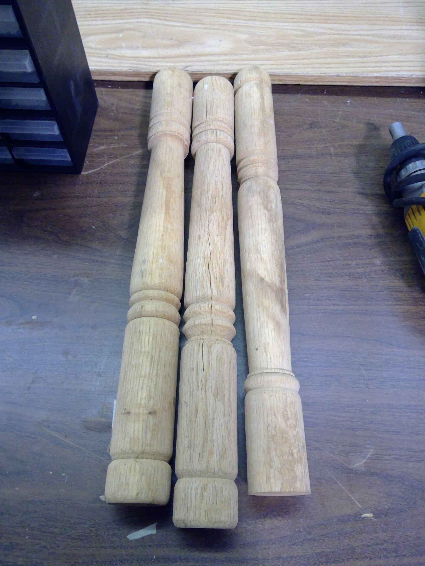 3 TURNED OAK SPINDLES