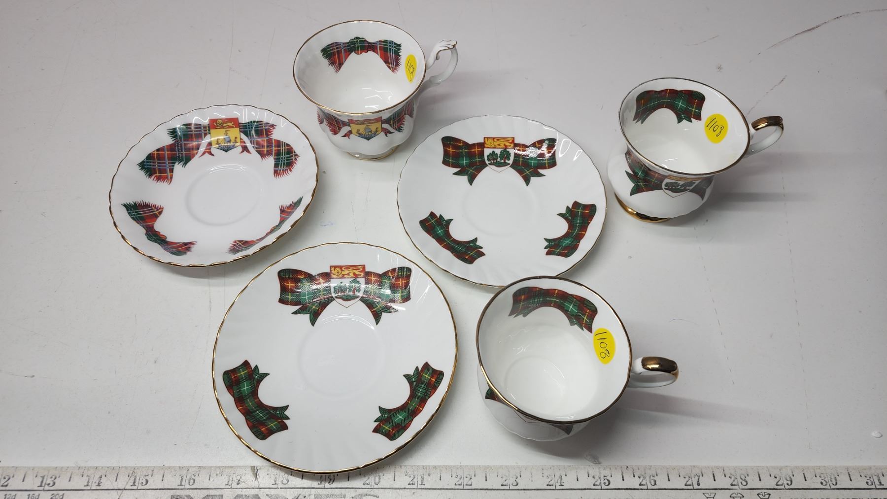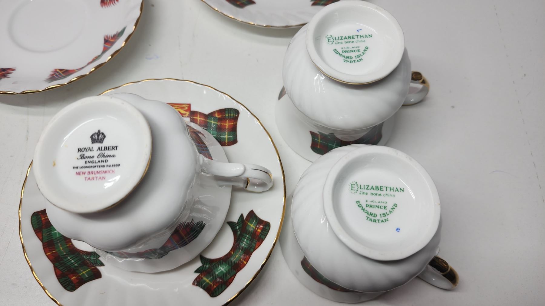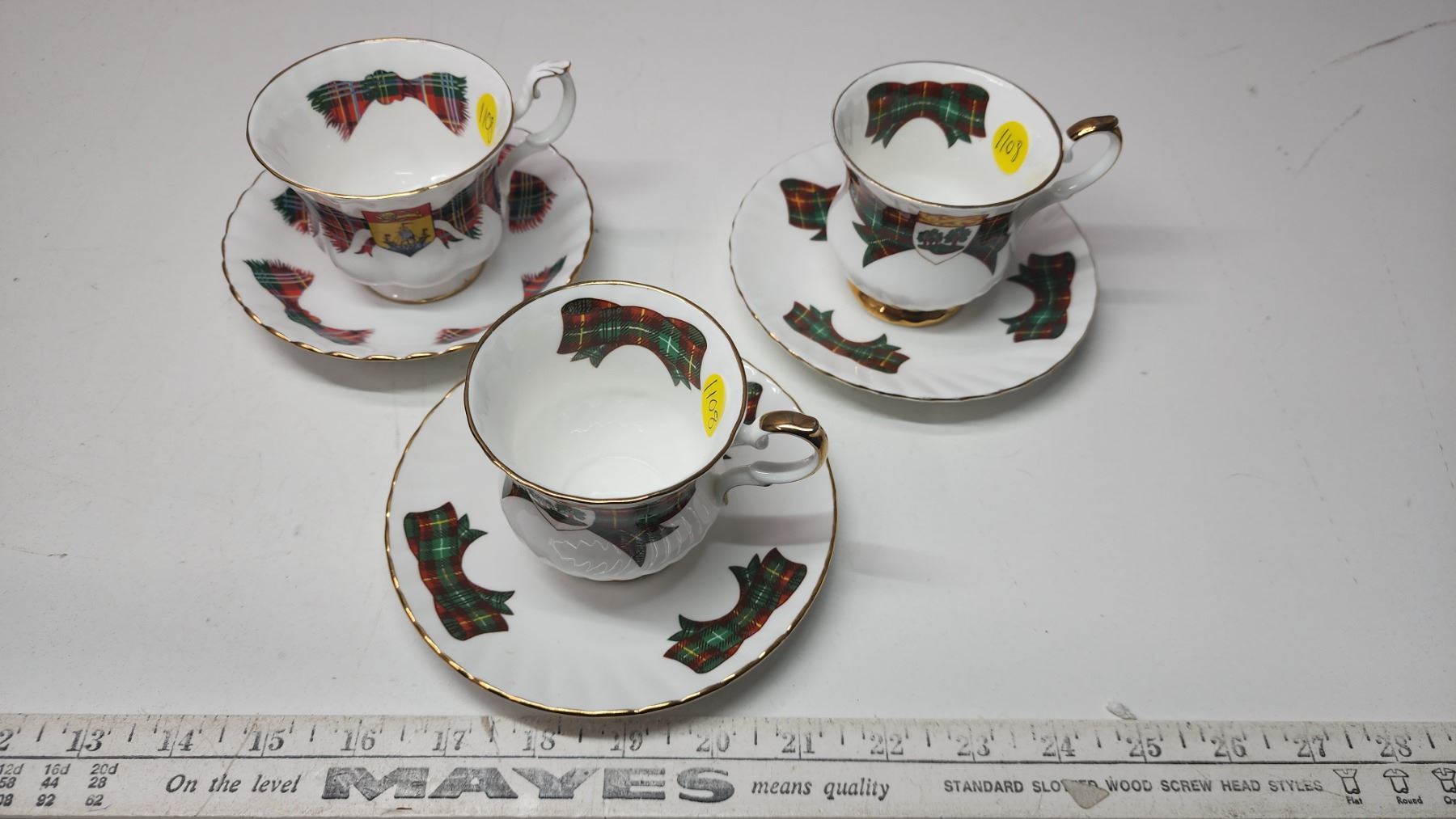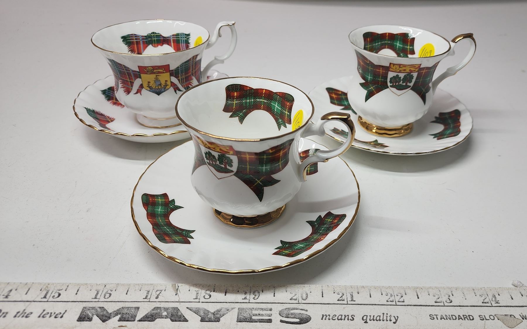 3 Tartan tea cup and saucers