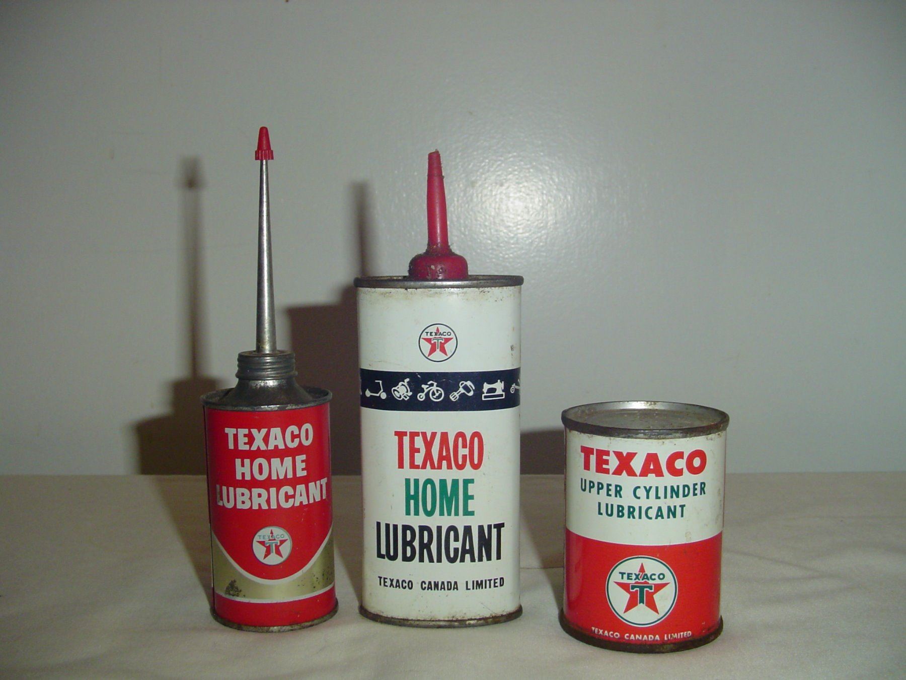 3 Texaco oil tins 2 handi oiler 1 cyl lube