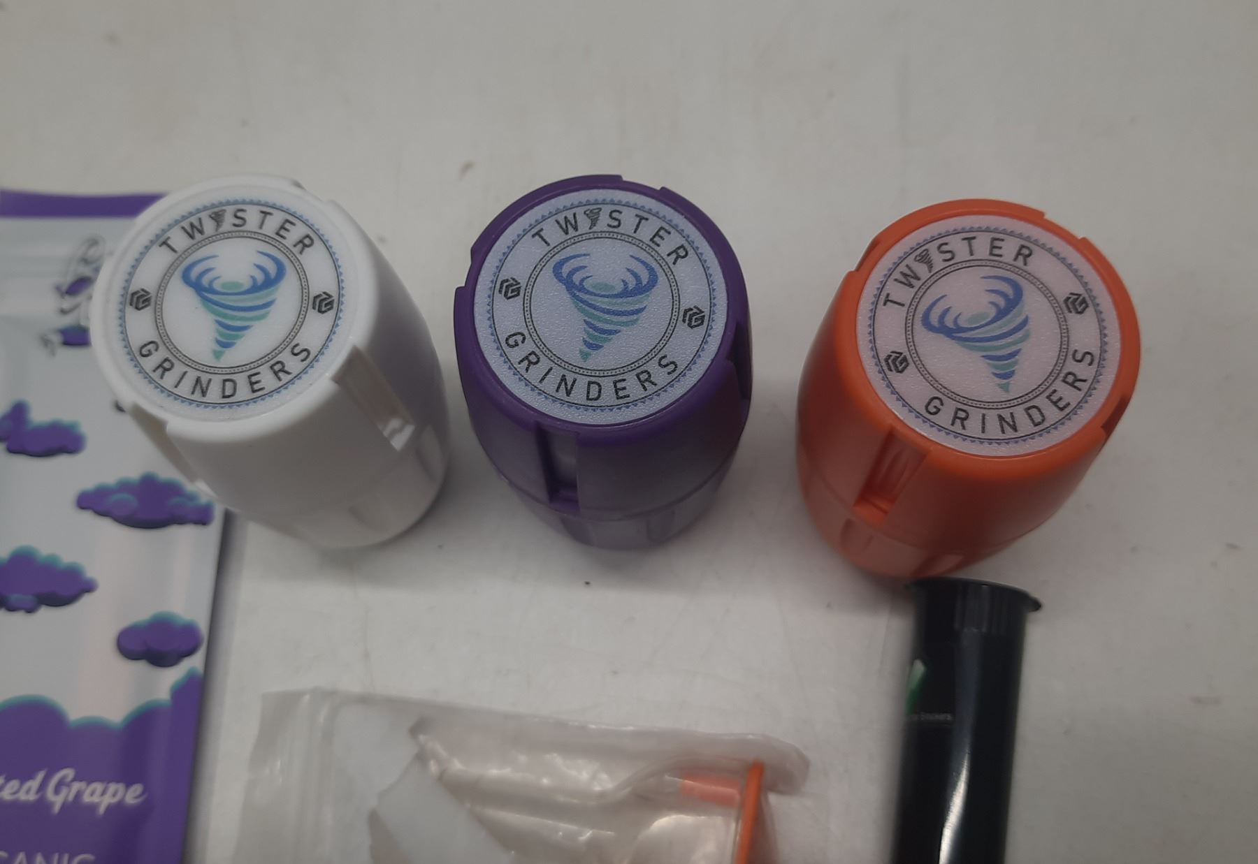 (3) Twister Grinders, (2) low Cloud, Zombie Survival Kit for Smokers, etc.