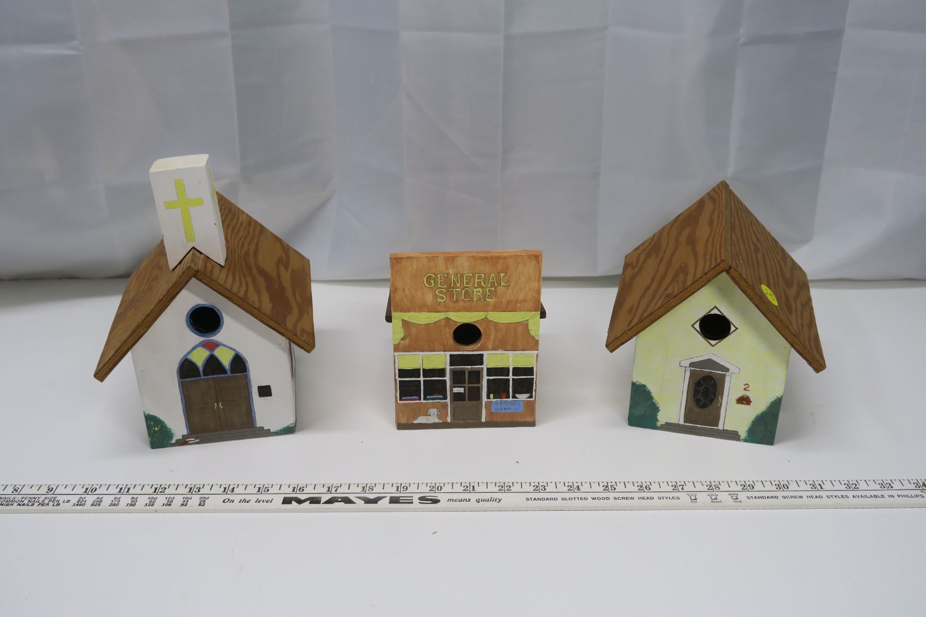 (3) Unique Custom Made Bird Houses - Church, House, General Store