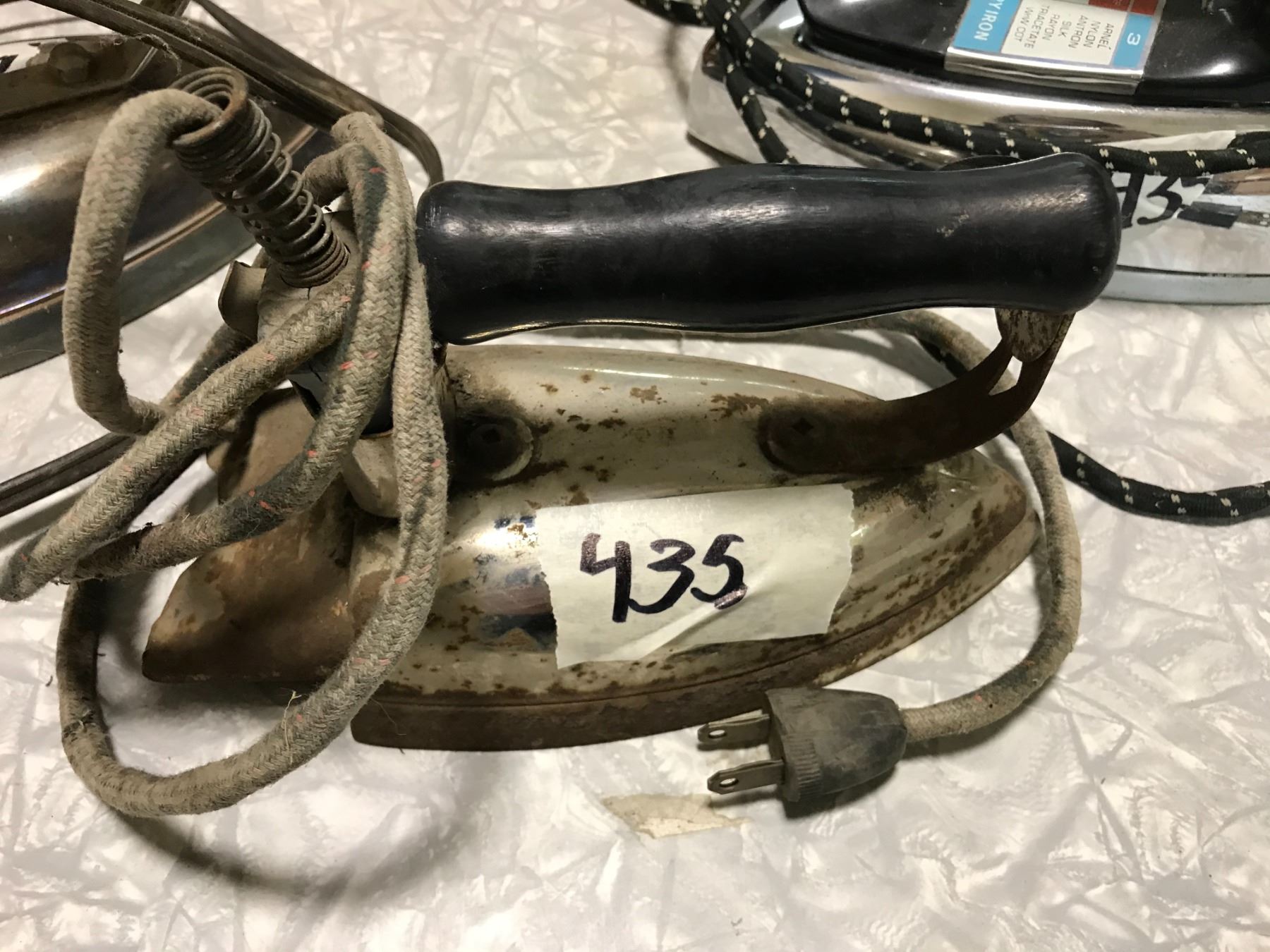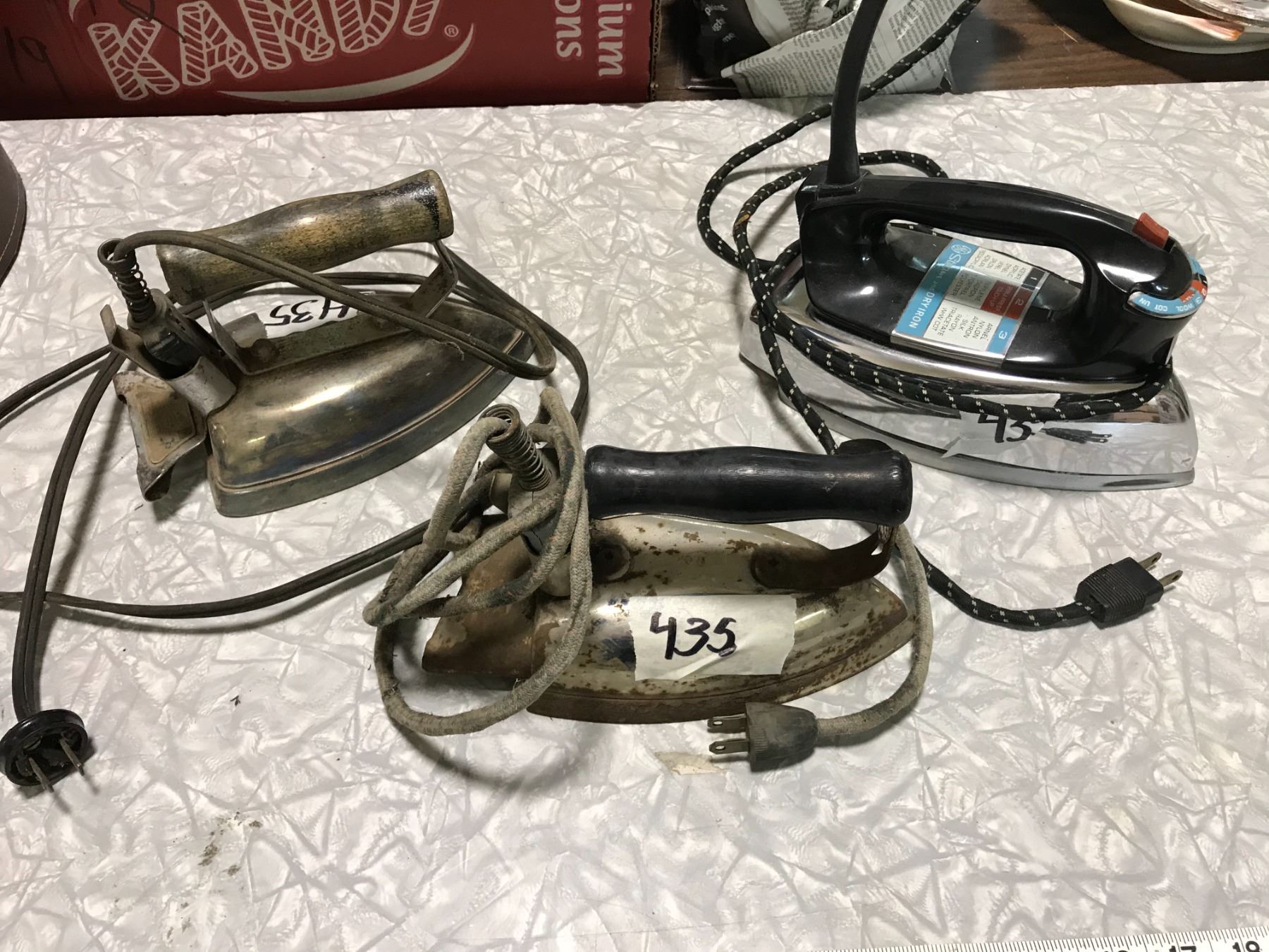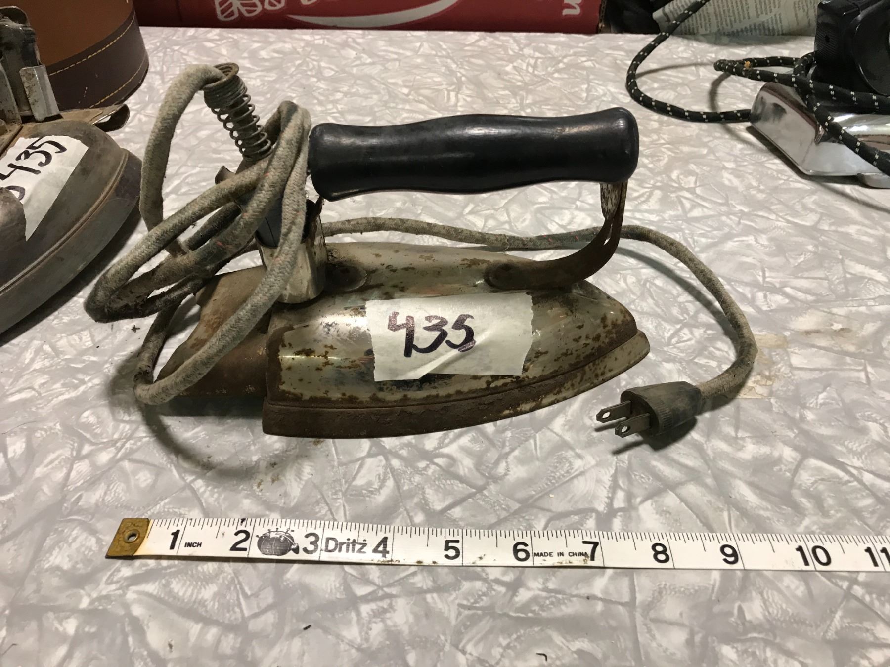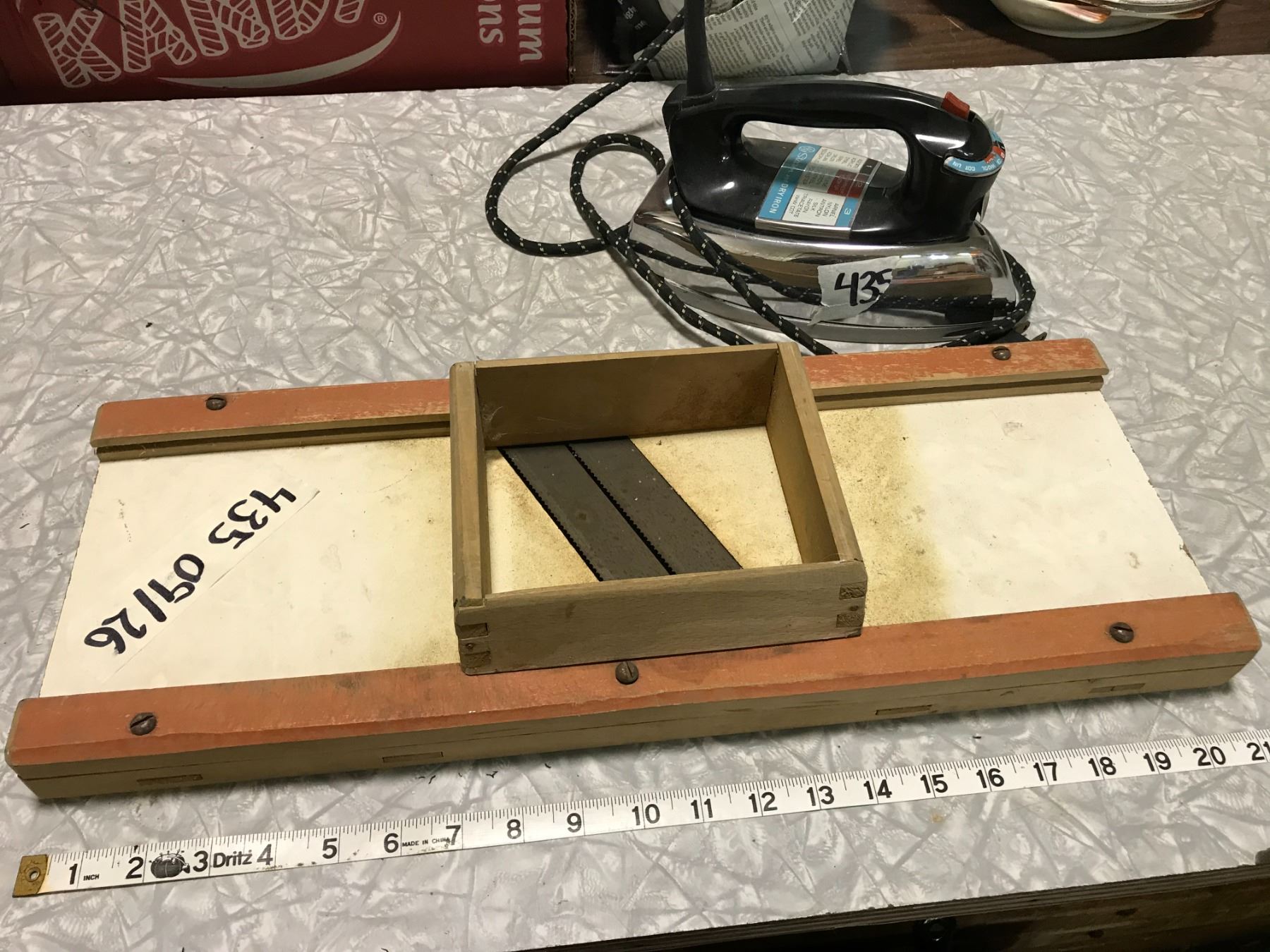 3 VINTAGE IRONS + CABBAGE SLICER