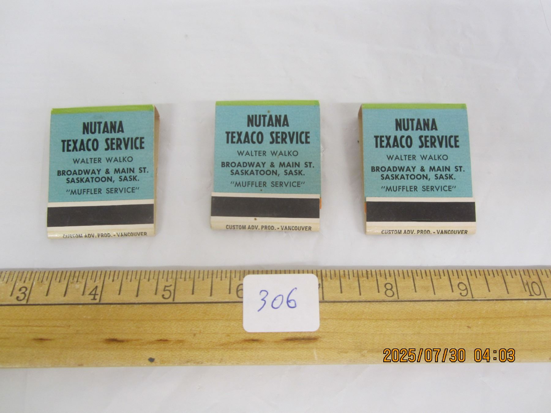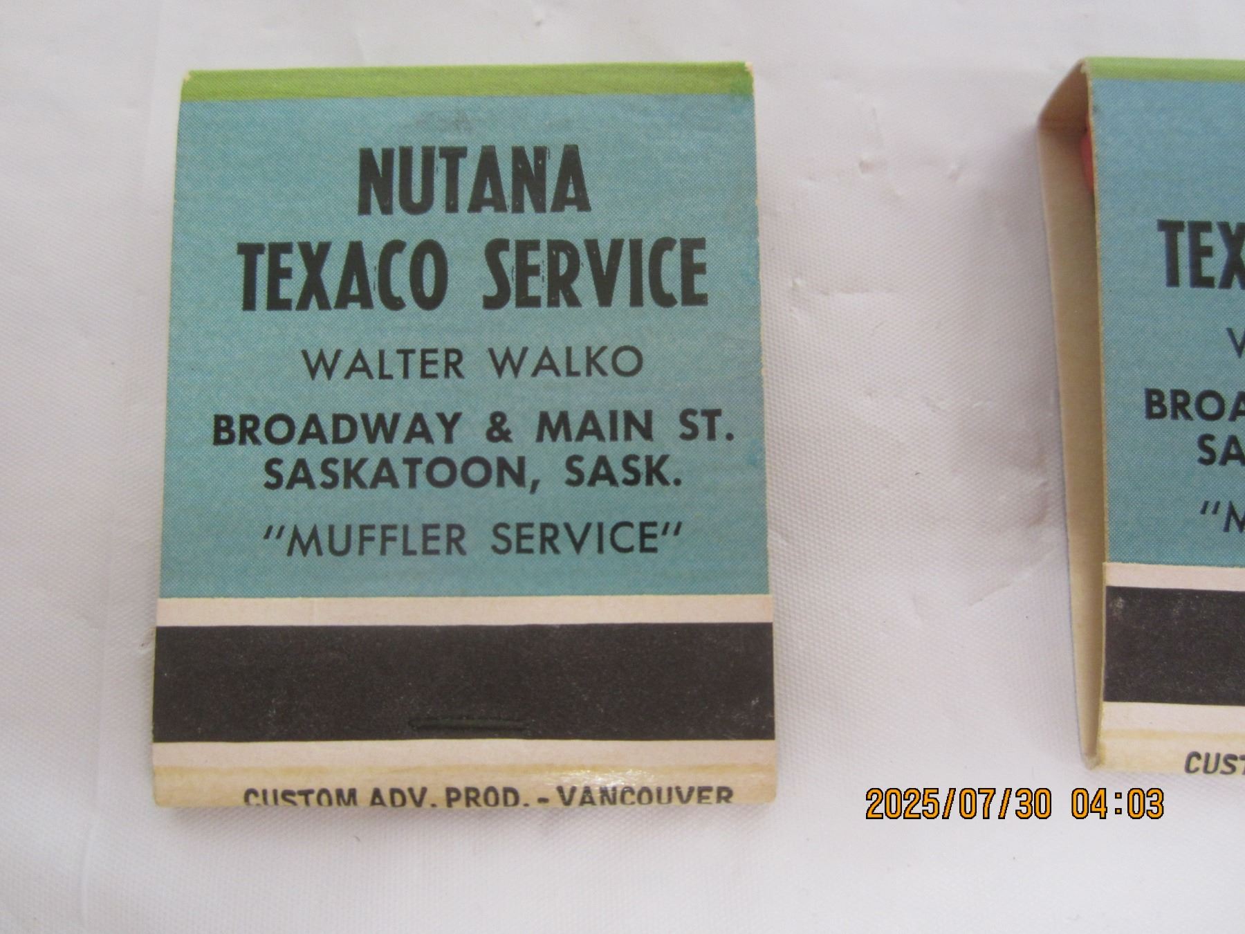 3 Vintage Advertising Match Books From the Nutana Texaco Service Center Broadway Saskatoon 1960's