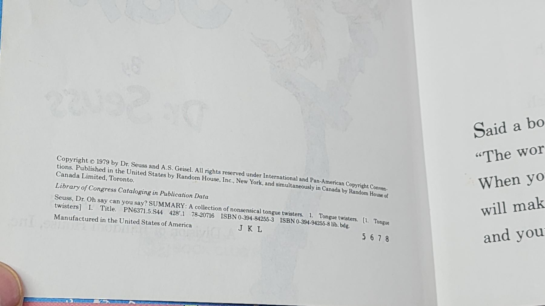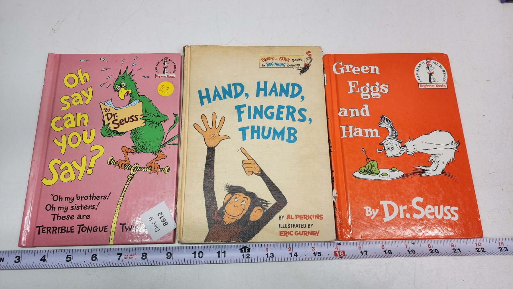 3 Vintage Dr. Seuss books - "Oh Say can you say?", "Hand, hand, fingers, thumb", & "Green eggs and H