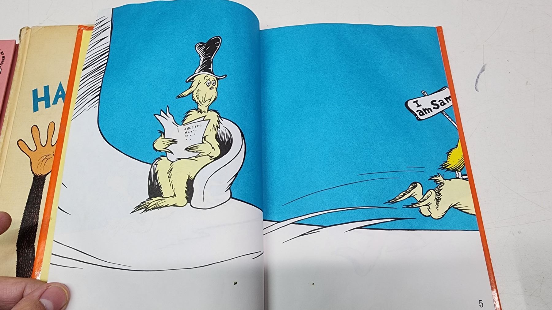 3 Vintage Dr. Seuss books - "Oh Say can you say?", "Hand, hand, fingers, thumb", & "Green eggs and Ham"