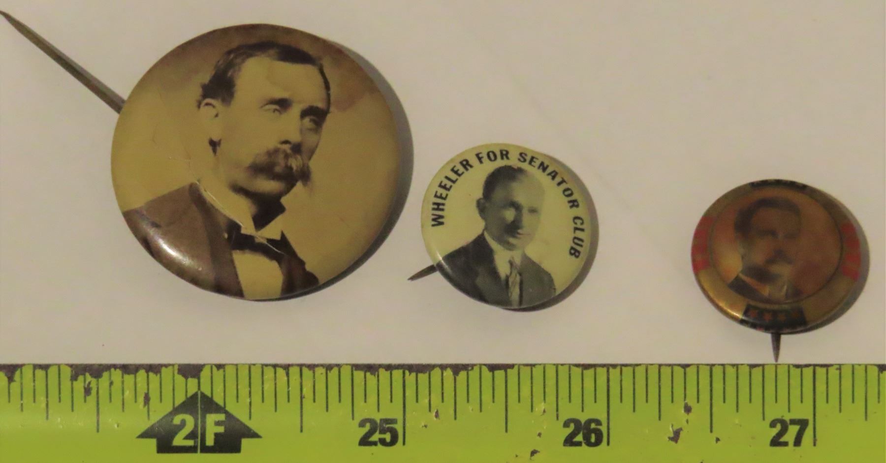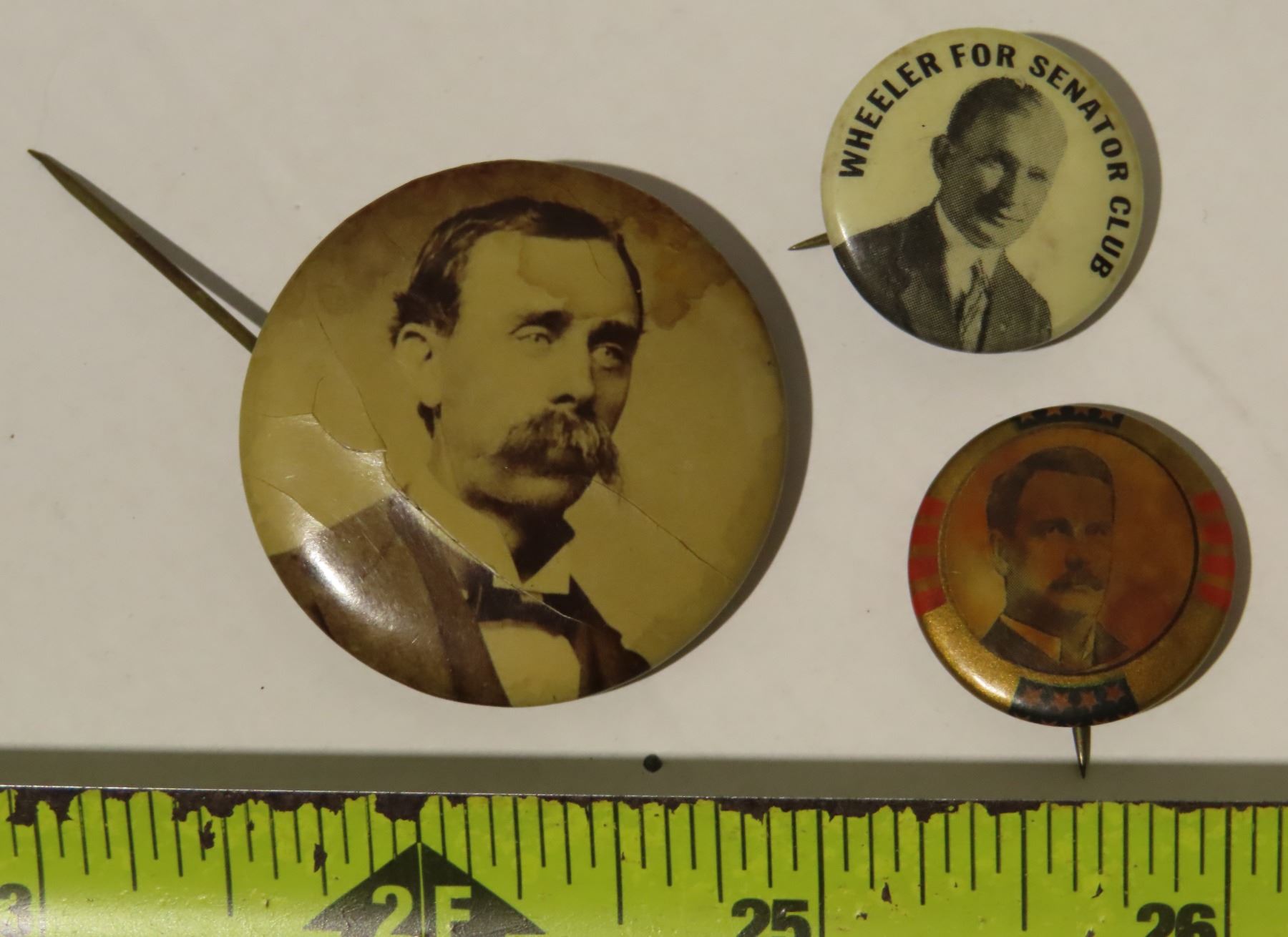 3 Vintage Election Button pin 1 stamped pinshock may 31 1898