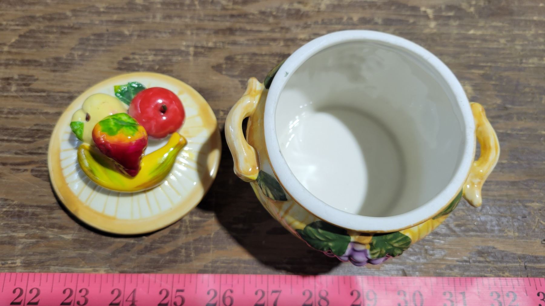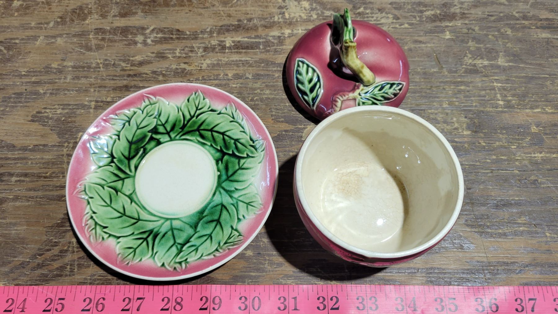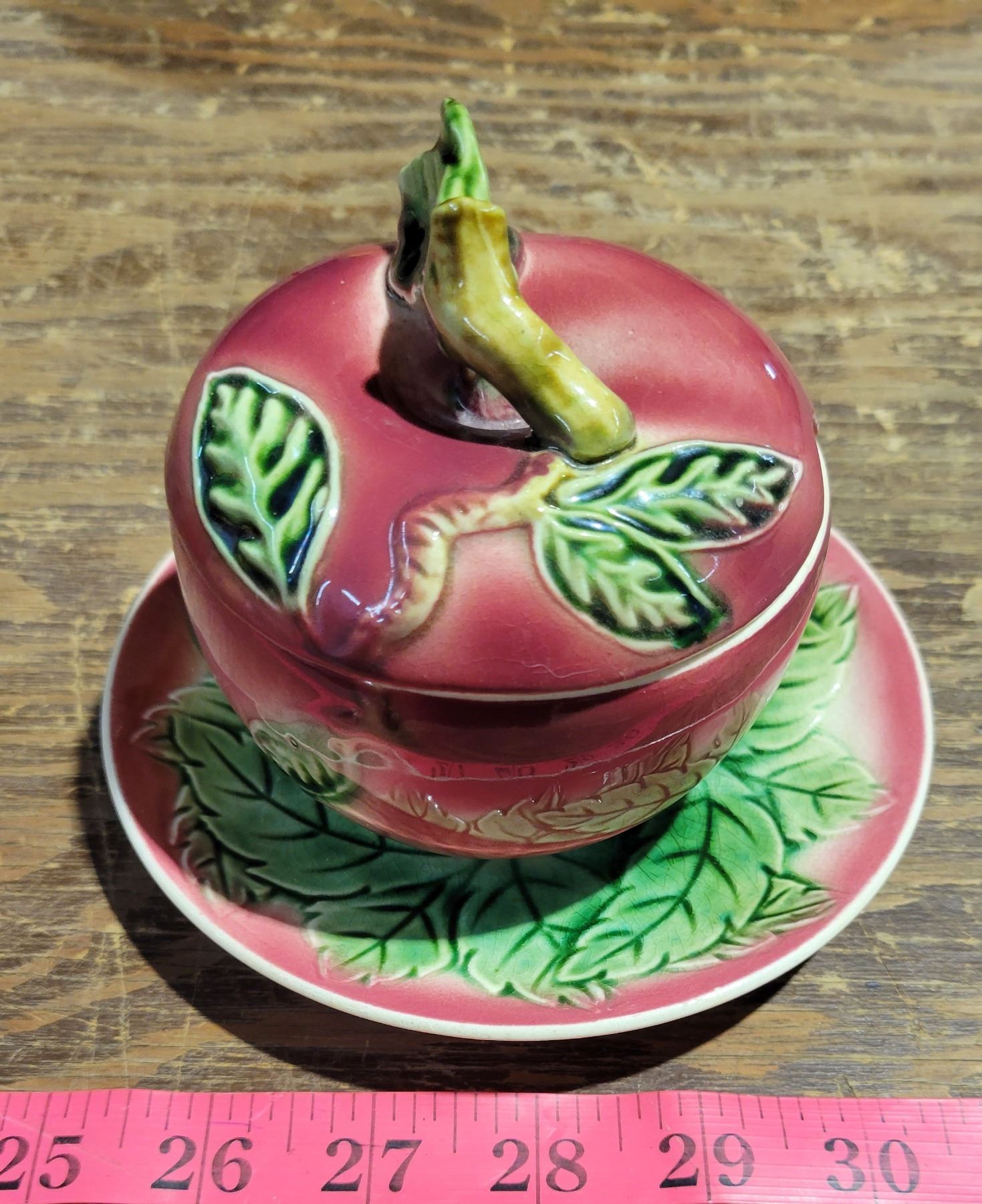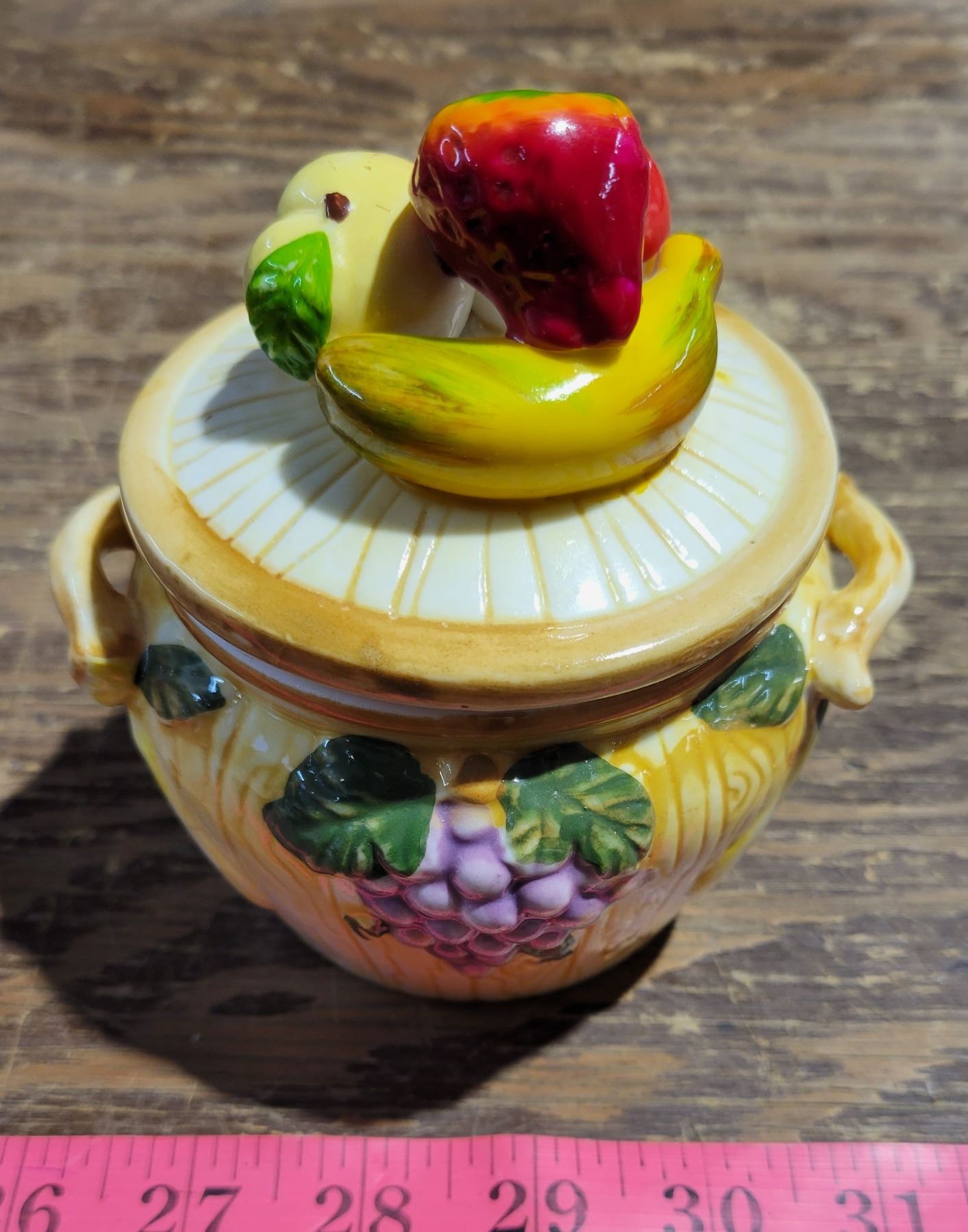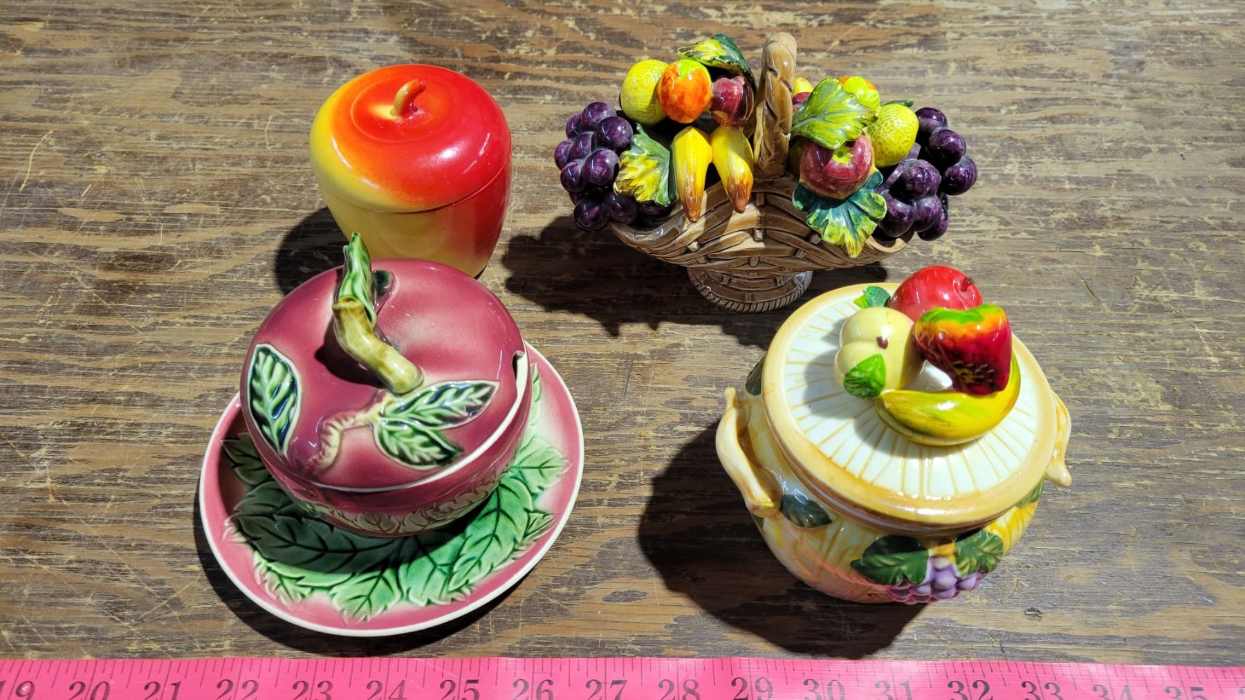 3 Vintage Jam Keepers + Table Center Piece, 1- Sorrento, 1 – Japan, 1 –Milk Glass
