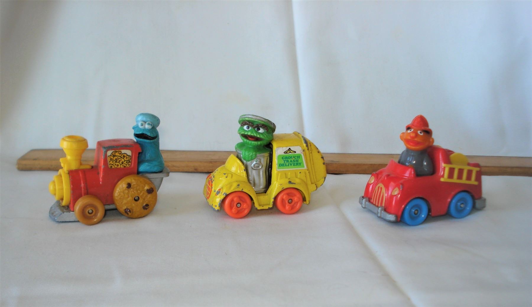3 Vintage Sesame Street Characters in vehicles early 1980s
