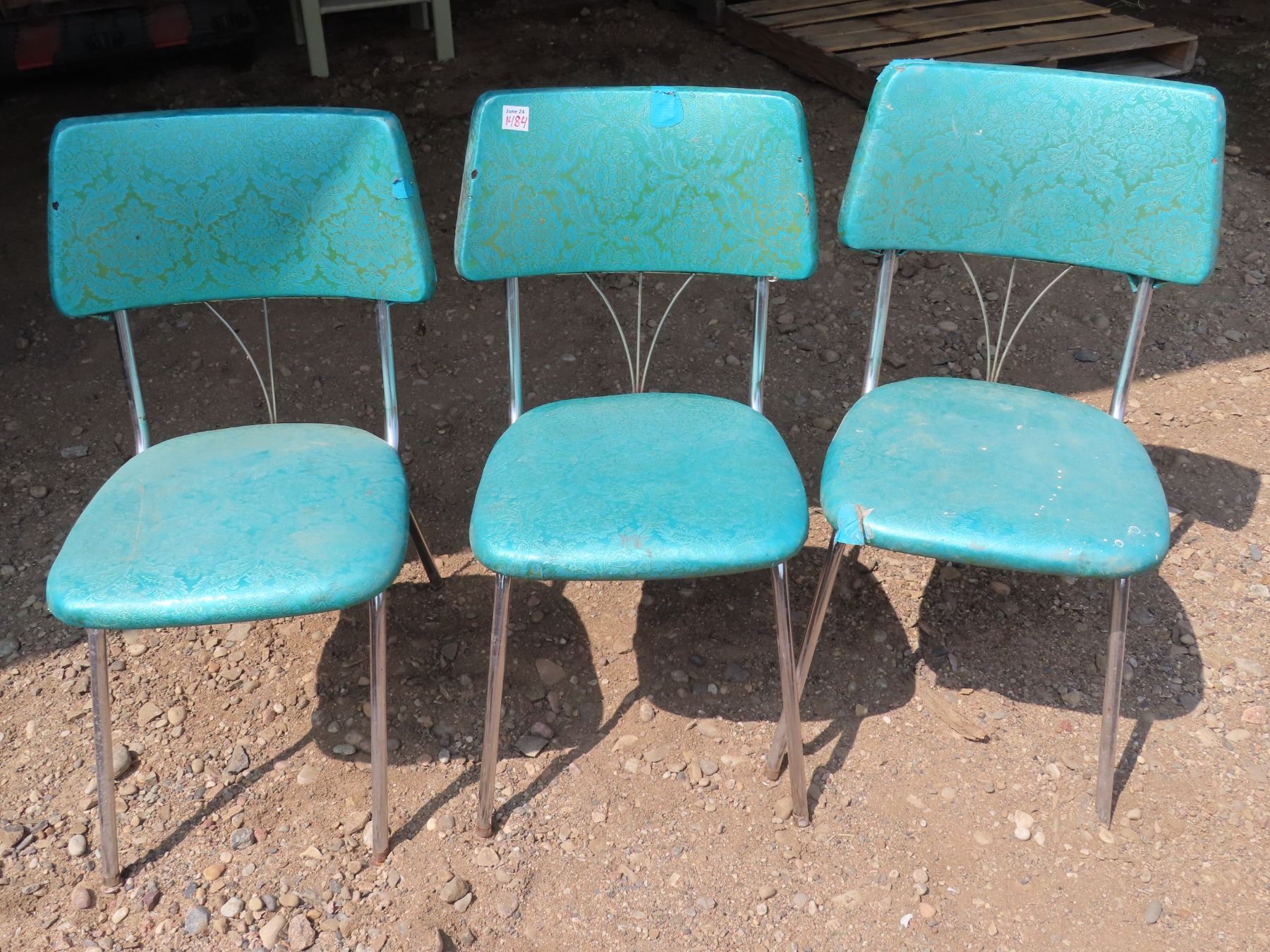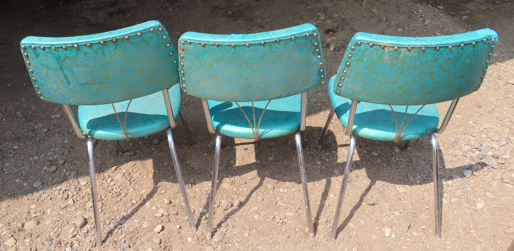 3 Vintage Teal Upholstered Chairs